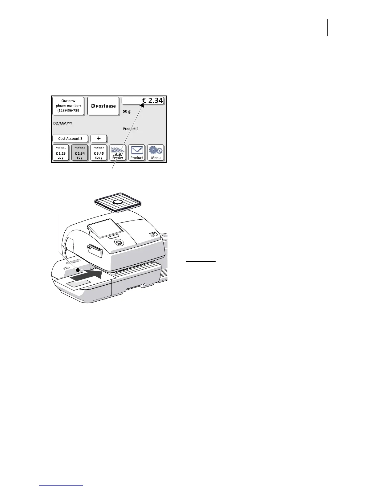 • To position the letter on the hand feed tray: