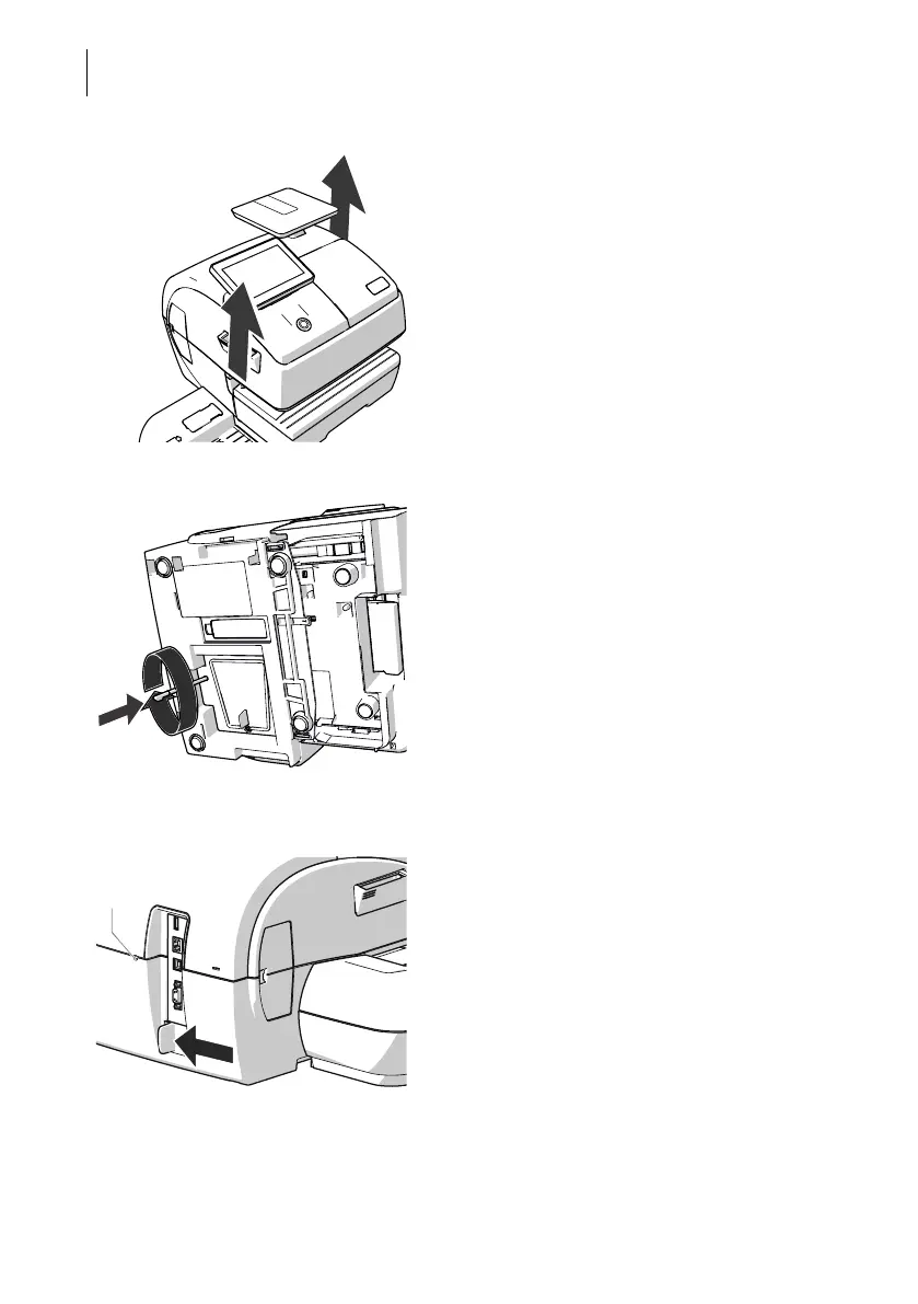 Lift ink cartridge from sealing position • Tilt the postage meter on its right-hand side