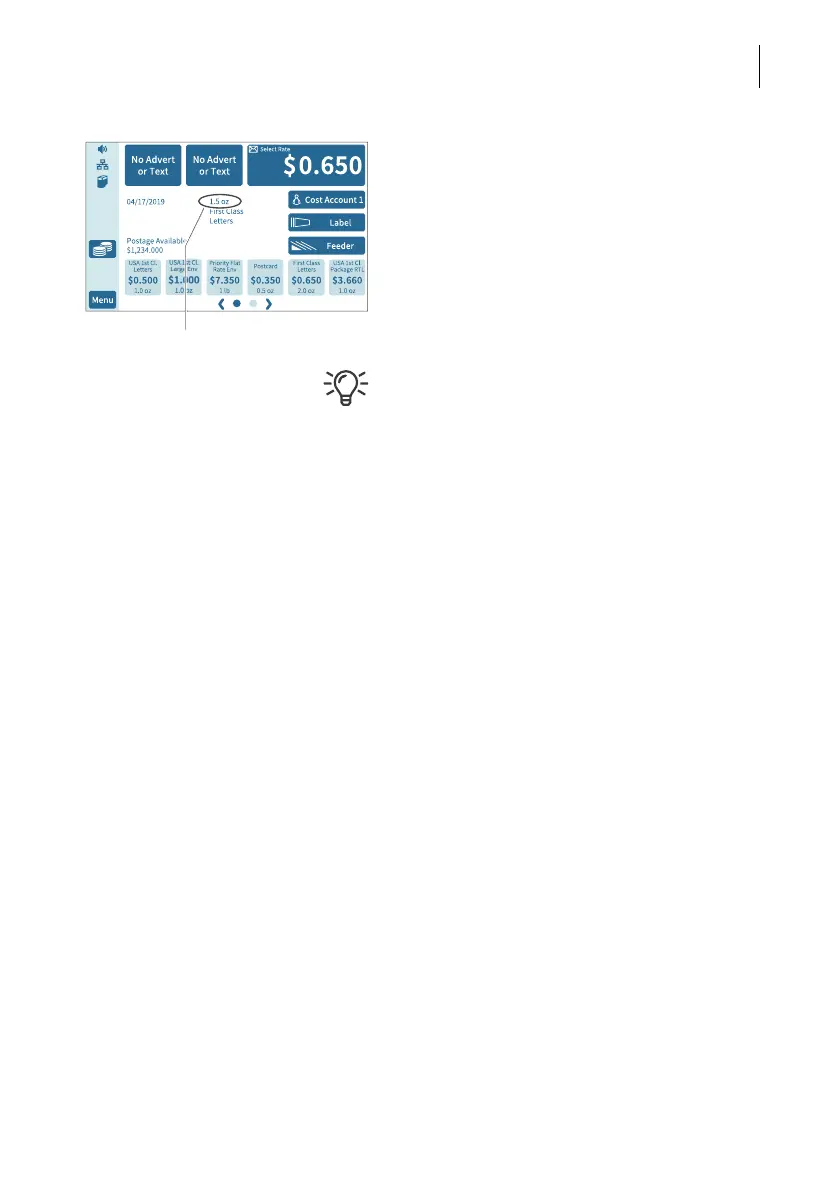 the weight displayed and the mailing data