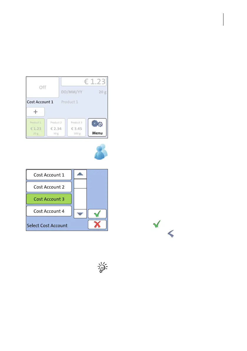 When the account function is active, PostBase Mini books all frankings to the cur-