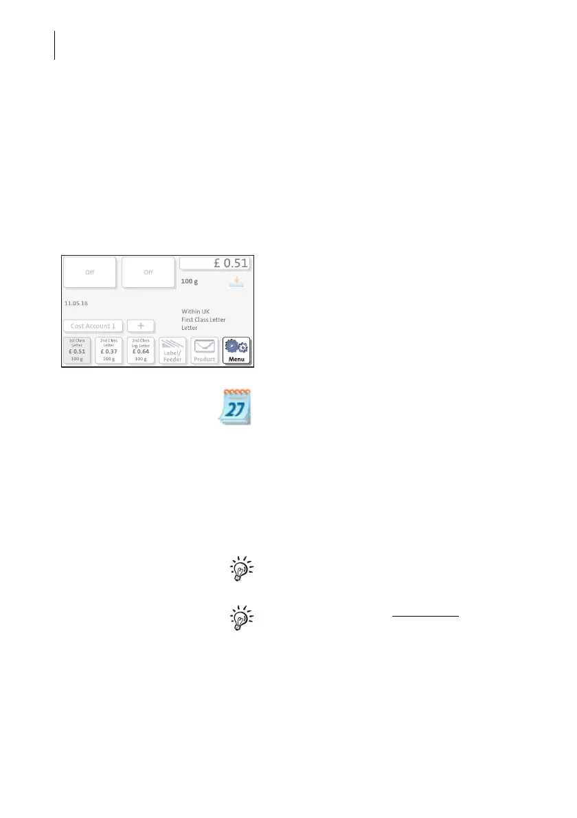 The date for the franking imprint is set automatically to the current date by the system