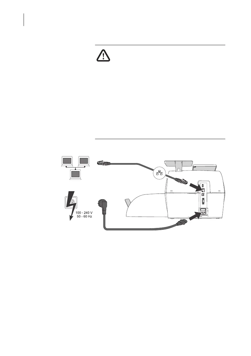 • Connect the Ethernet cable to the franking
