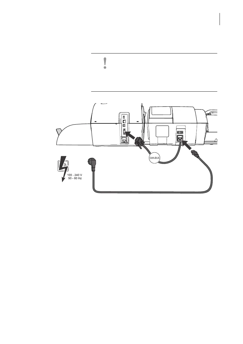 Connection on the franking machine • Connect the feeder connection cable to the