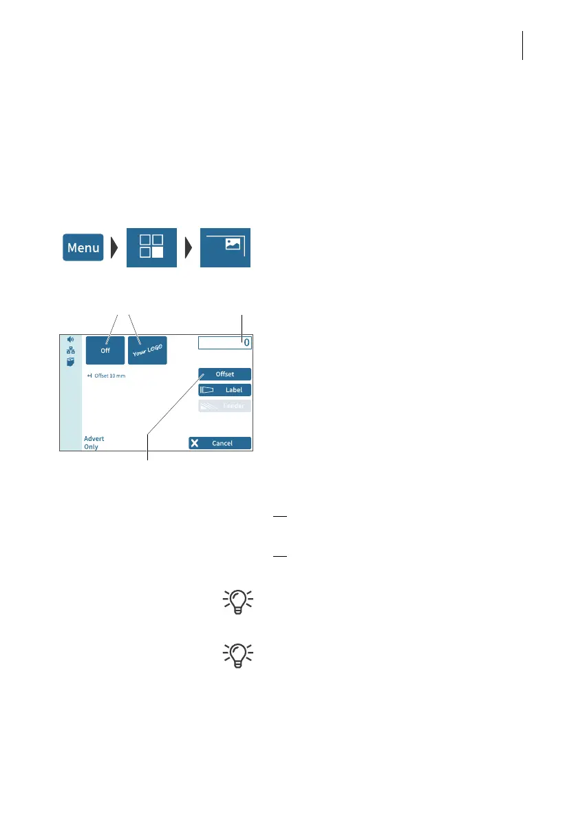 With the special function “Advert Only” you can print advertising imprints (graphical