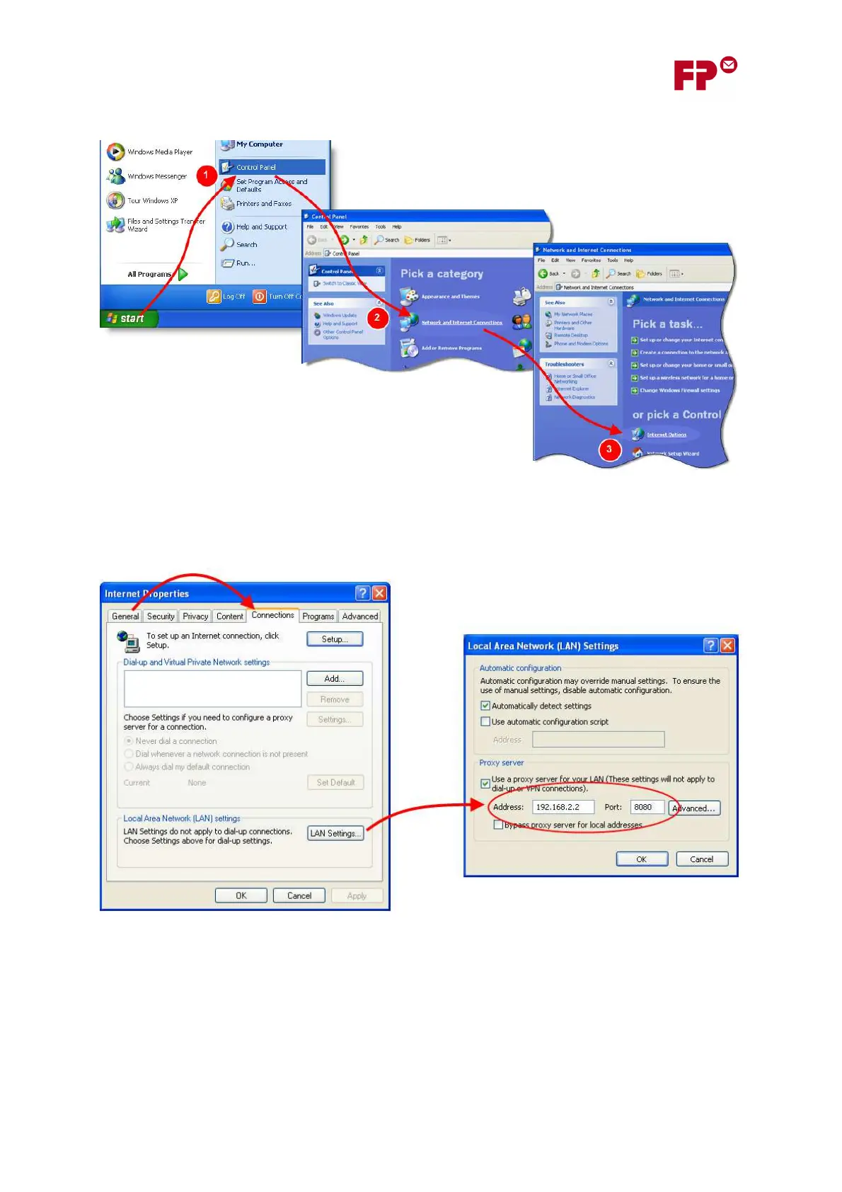 6. In the example, the proxy server has an IP Address of ‘192.168.2.2’ and a Port Number of