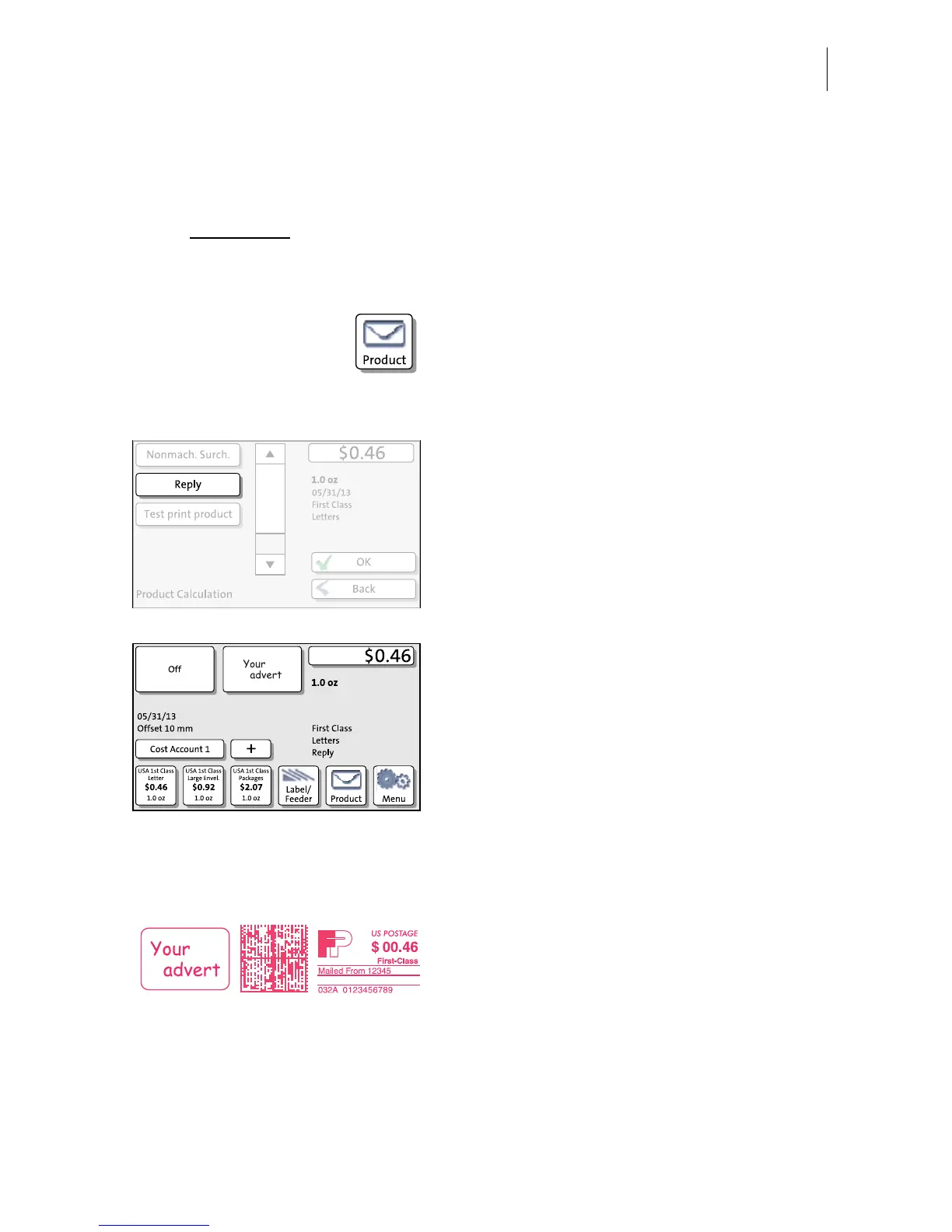 settings for the reply mail meter imprint: