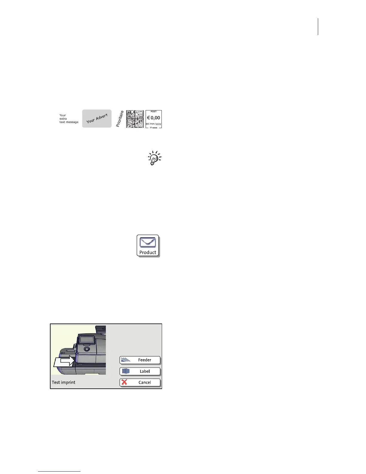 Using a test print, you can assess the settings for the franking imprint as well as the