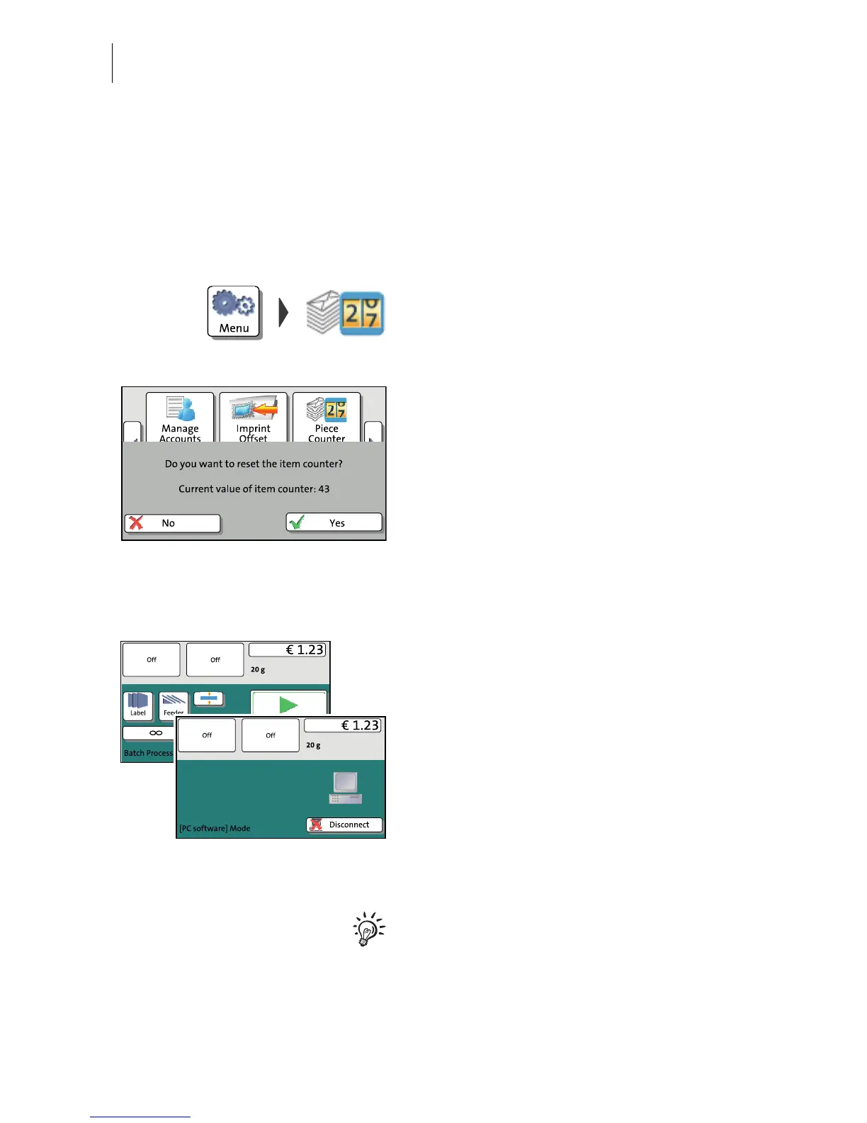 The item counter counts all franking imprints. Independently of other counter func-