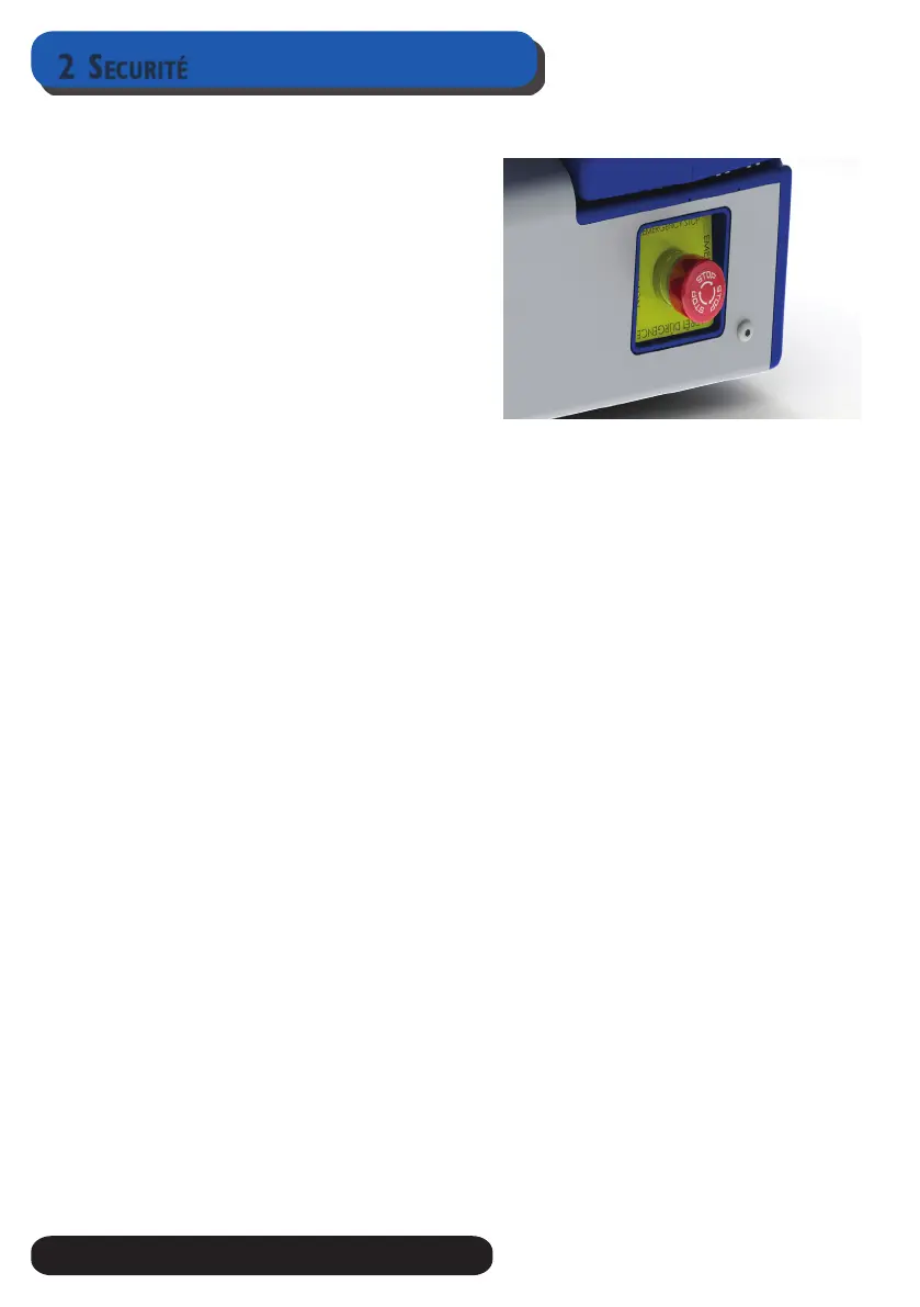 • Ne jamais réactiver le commutateur d’arrêt d’urgence tant ce que vous n’êtes pas certain que le