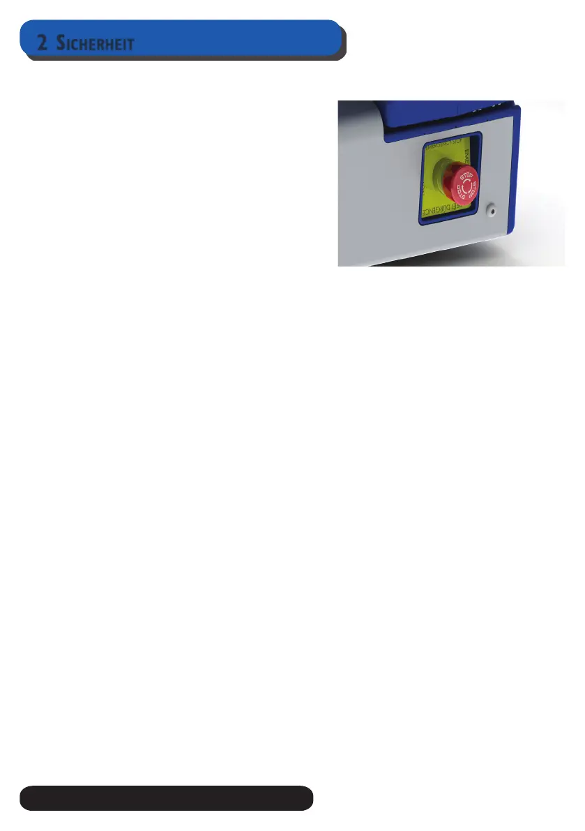 • Der Notschalter darf niemals entsperrt werden, bevor die Maschine wieder absolut sicher
