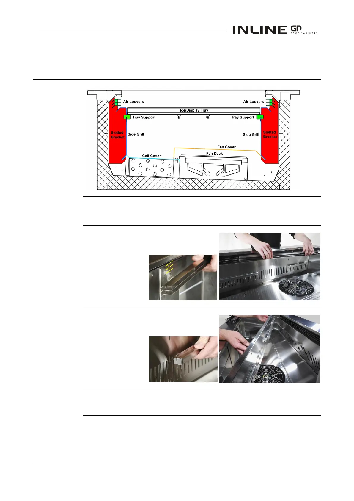 First remove the gastronorm dishes, support rails and deck trays.