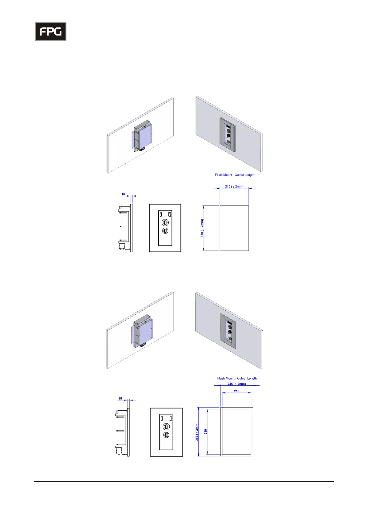 FPG Inline GN Series - Control Panel Mounting; Over Mounting; Flush Mounting; Under Mounting