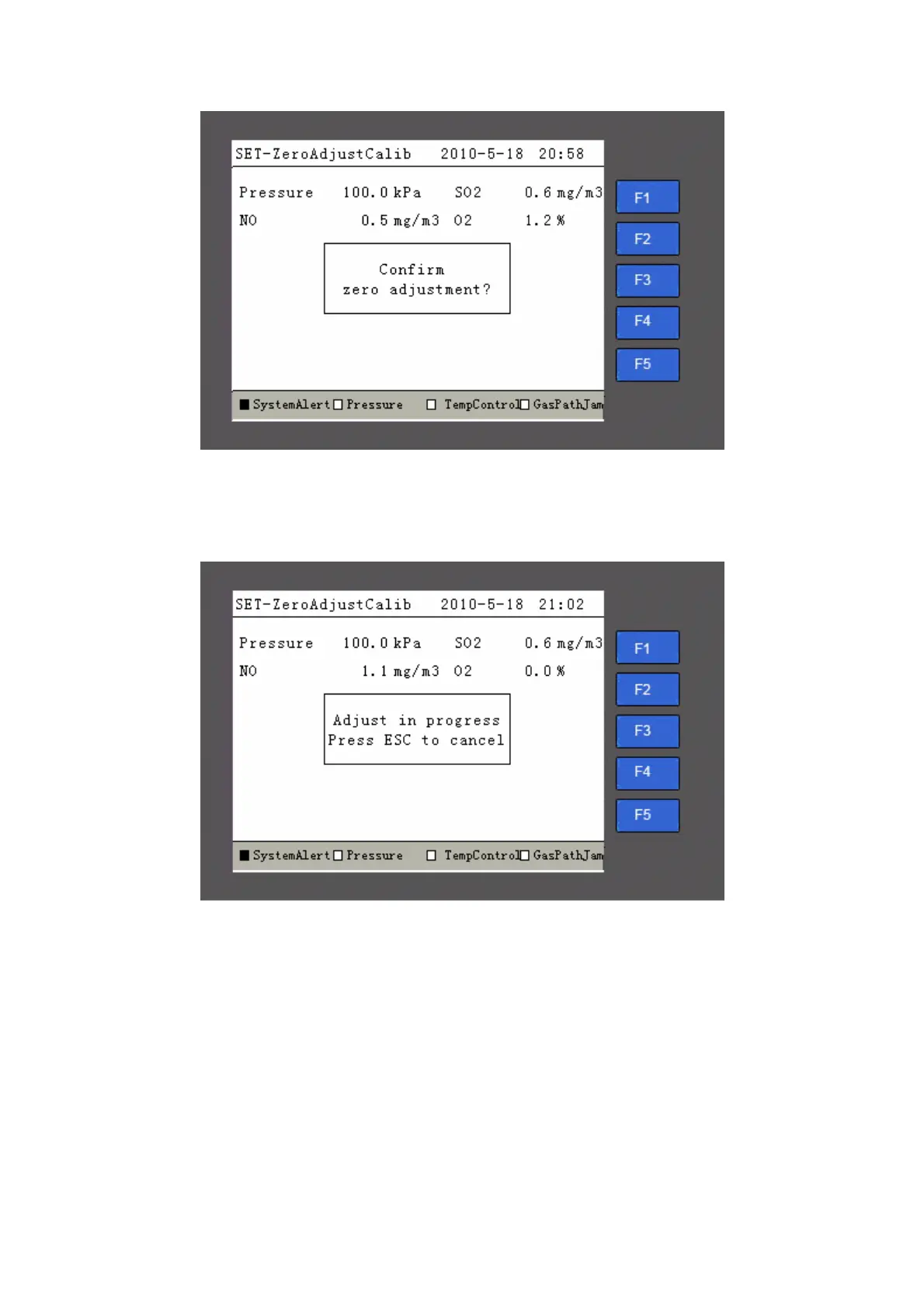 After the zero adjustment is finished, the system will return to the manual zero adjustment