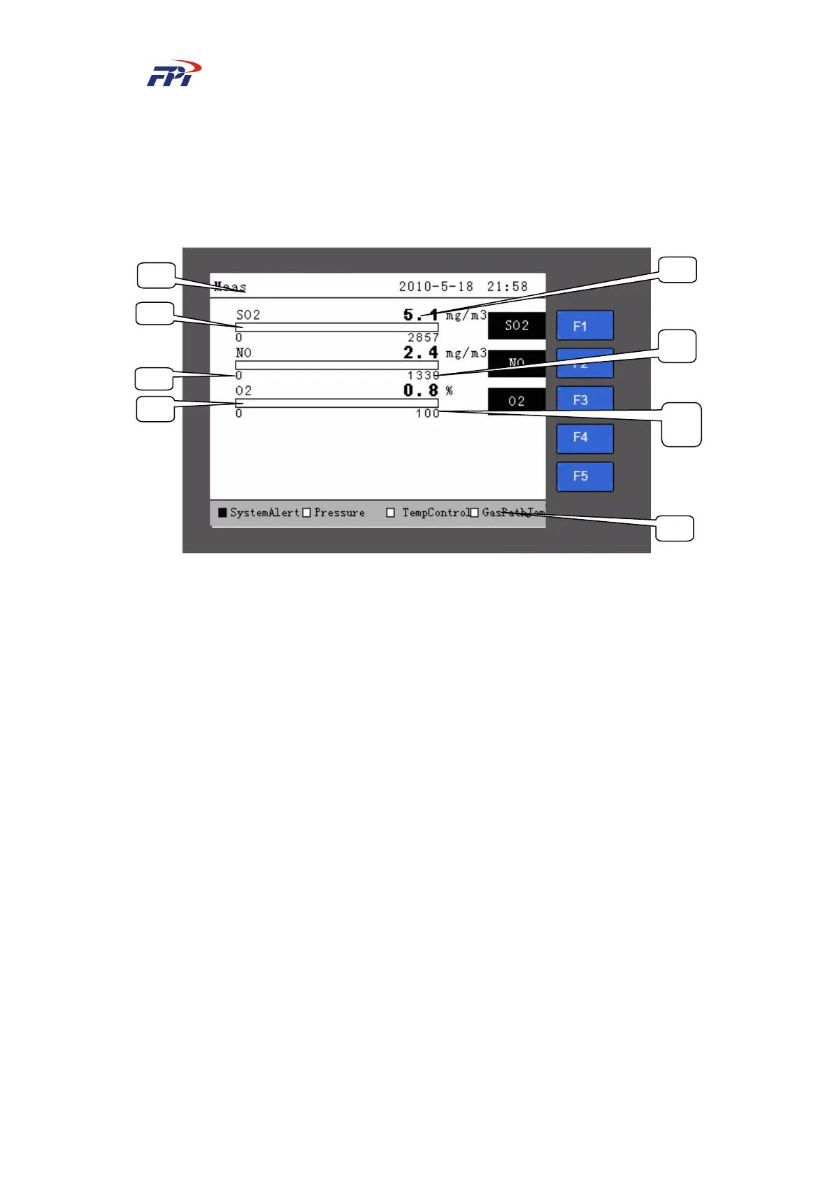 h. System status bar: On the status bar there are 4 alert items: system alert, pressure abnormal,