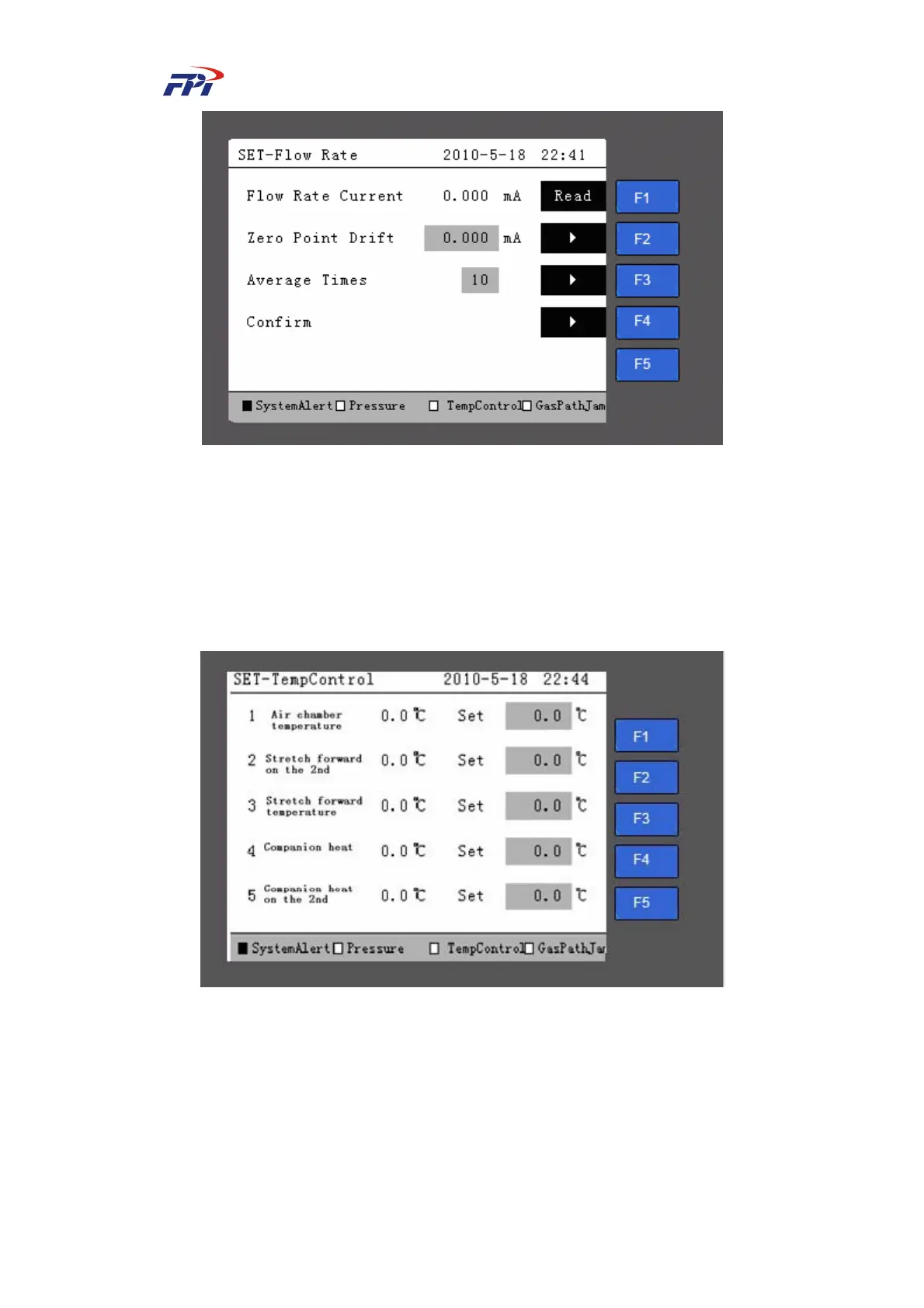 temperature of gas room, probe and tracing pipe.