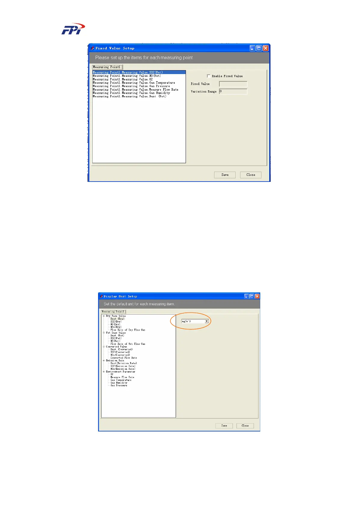 Select the measuring variable to be configured and select the check box of “Enable fixed