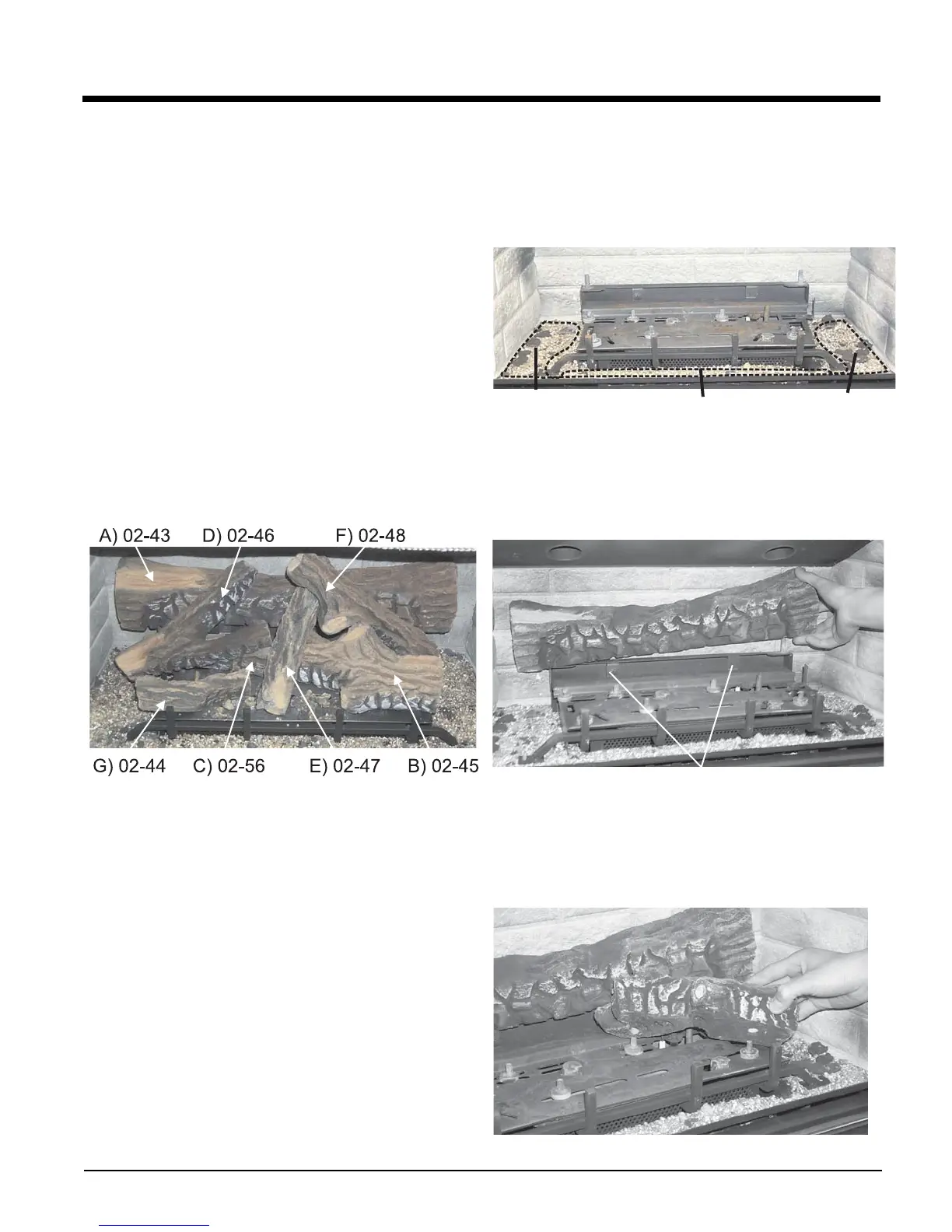 3) Place Rear Log A)02-43 on the two pins on the rear