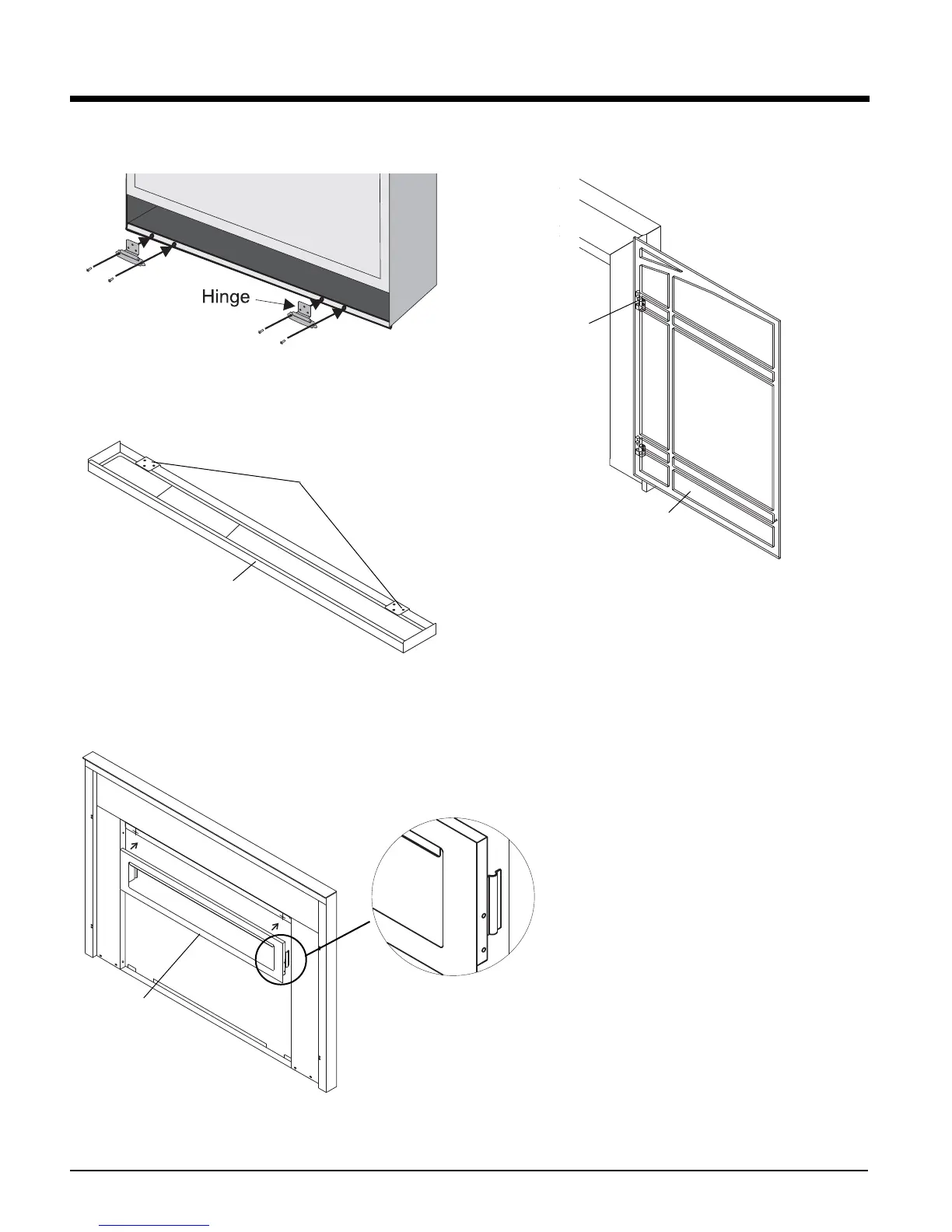 5) Place Bottom Frame near hinge. Flip hinge over Bottom Frame and