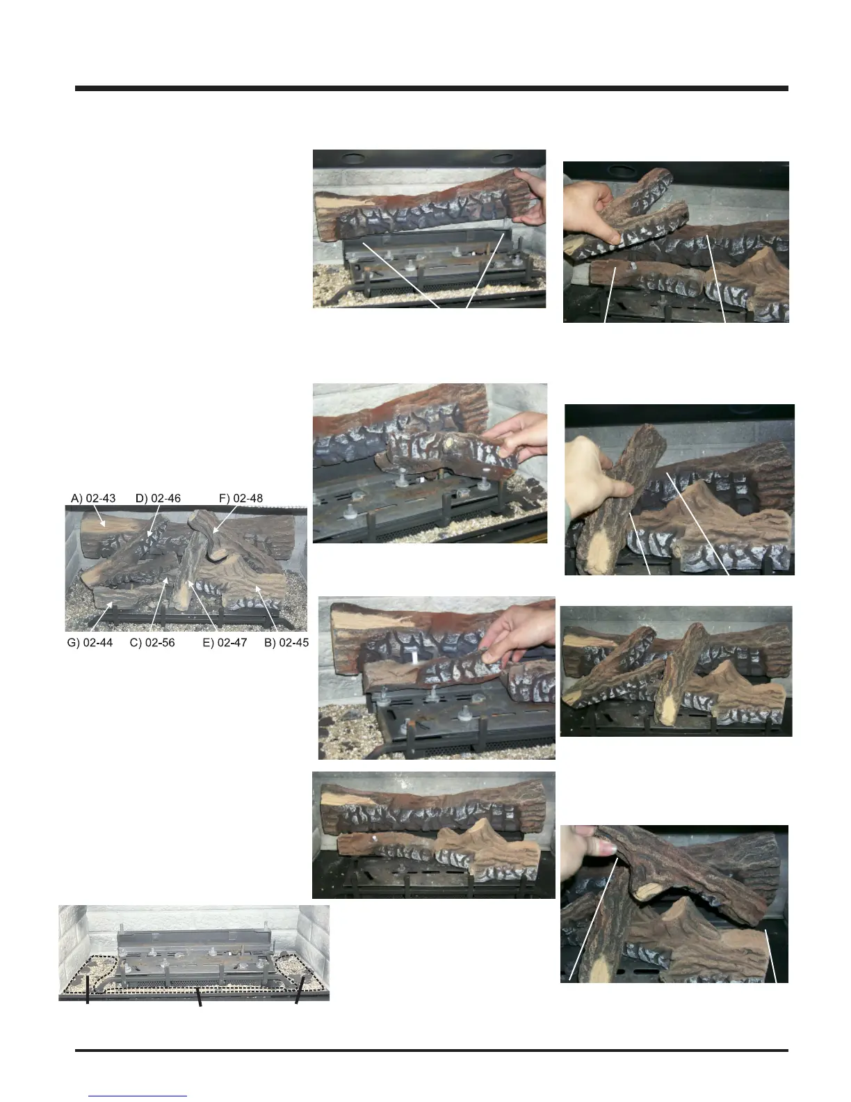3) Place Rear Log A)02-43 on the two pins on