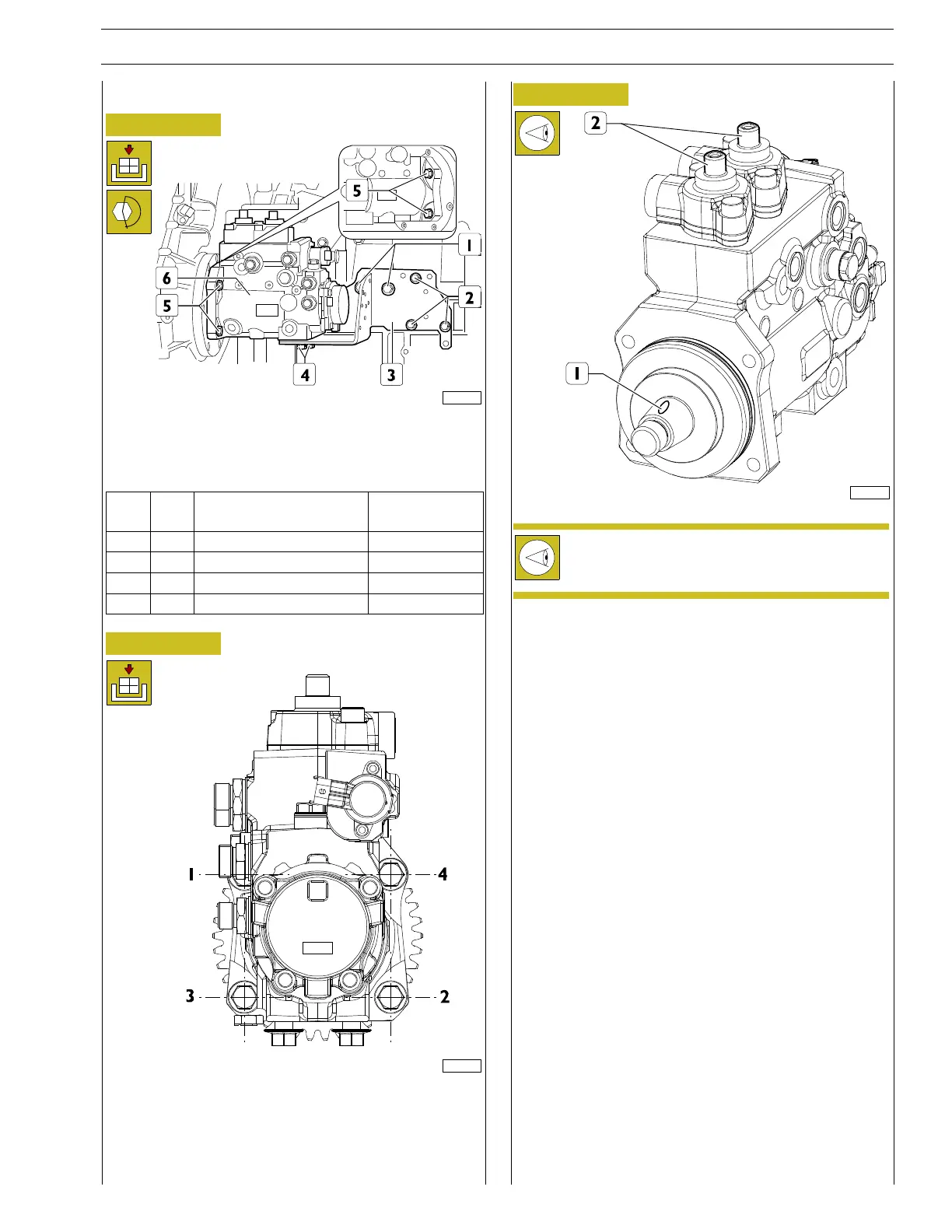 Position the high pressure pump (6) and tighten the screws (4,