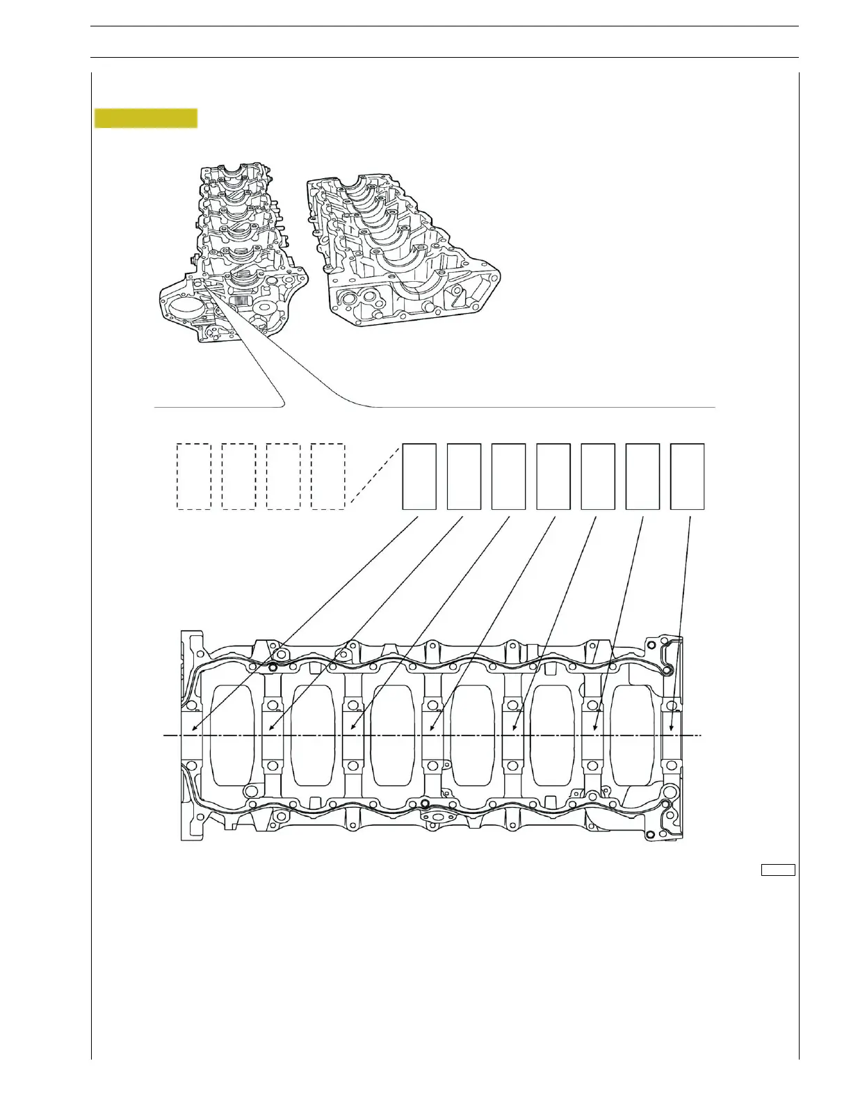 To identify the diameter class of the seats for the main half-bearings, look at the front part of the crankcase in the position as indicated