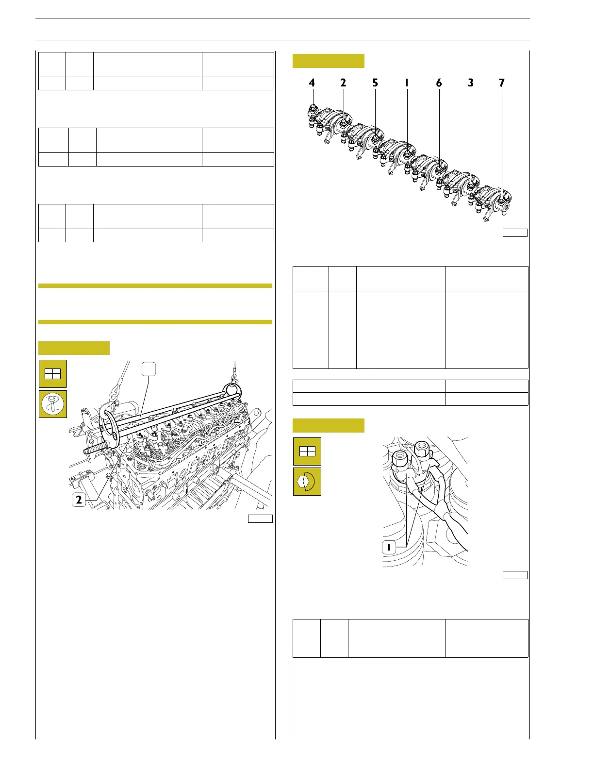 Apply the tool 99360553 (1) to the rocker arm shaft (2) and