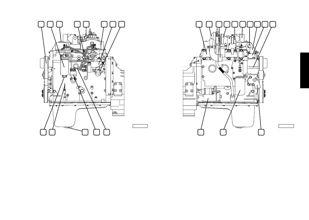 10. Alternator - 11. Engine coolant inlet - 12. Oil filter - 13. Electric