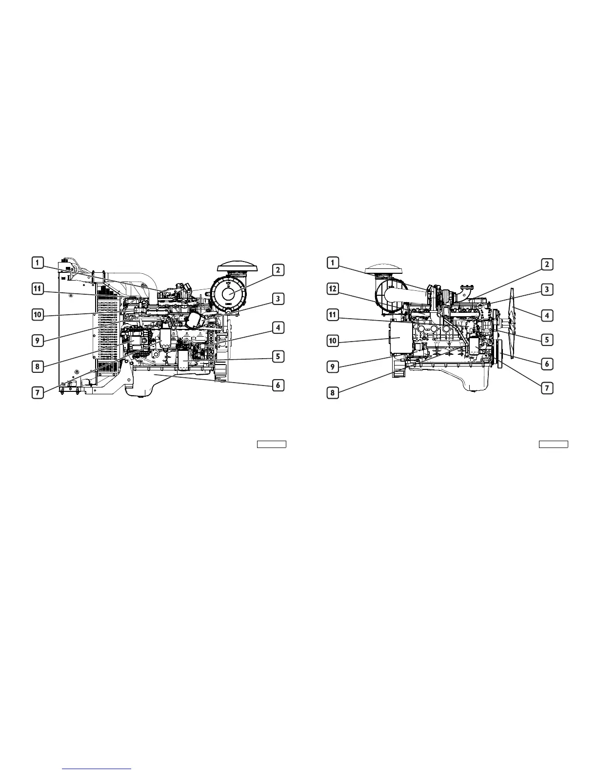 1. Turbocharger - 2. Tappet cover - 3. Lifting eyelet - 4. Fan -