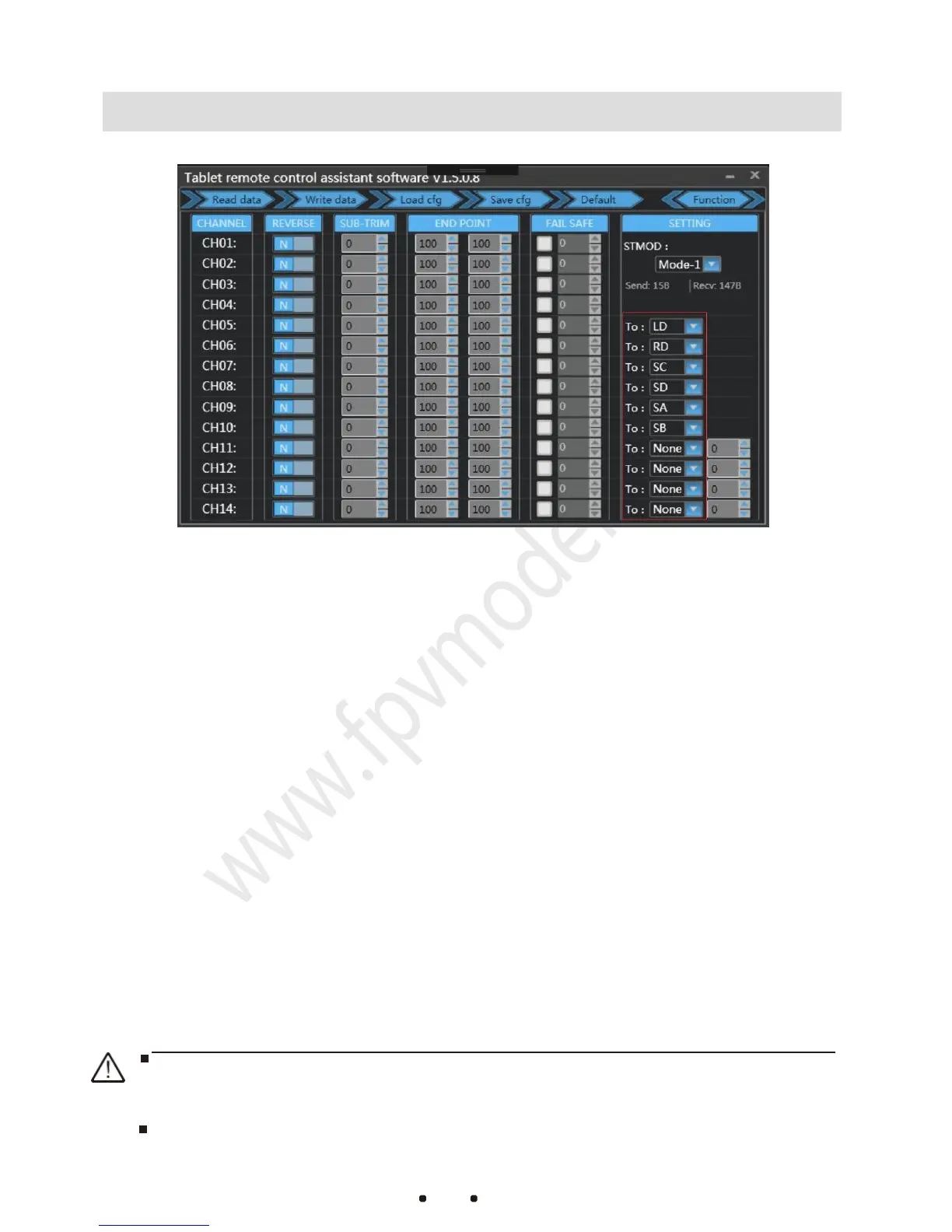 2. The configuration of REVERSE, SUB-TRIM and END POINT are the same