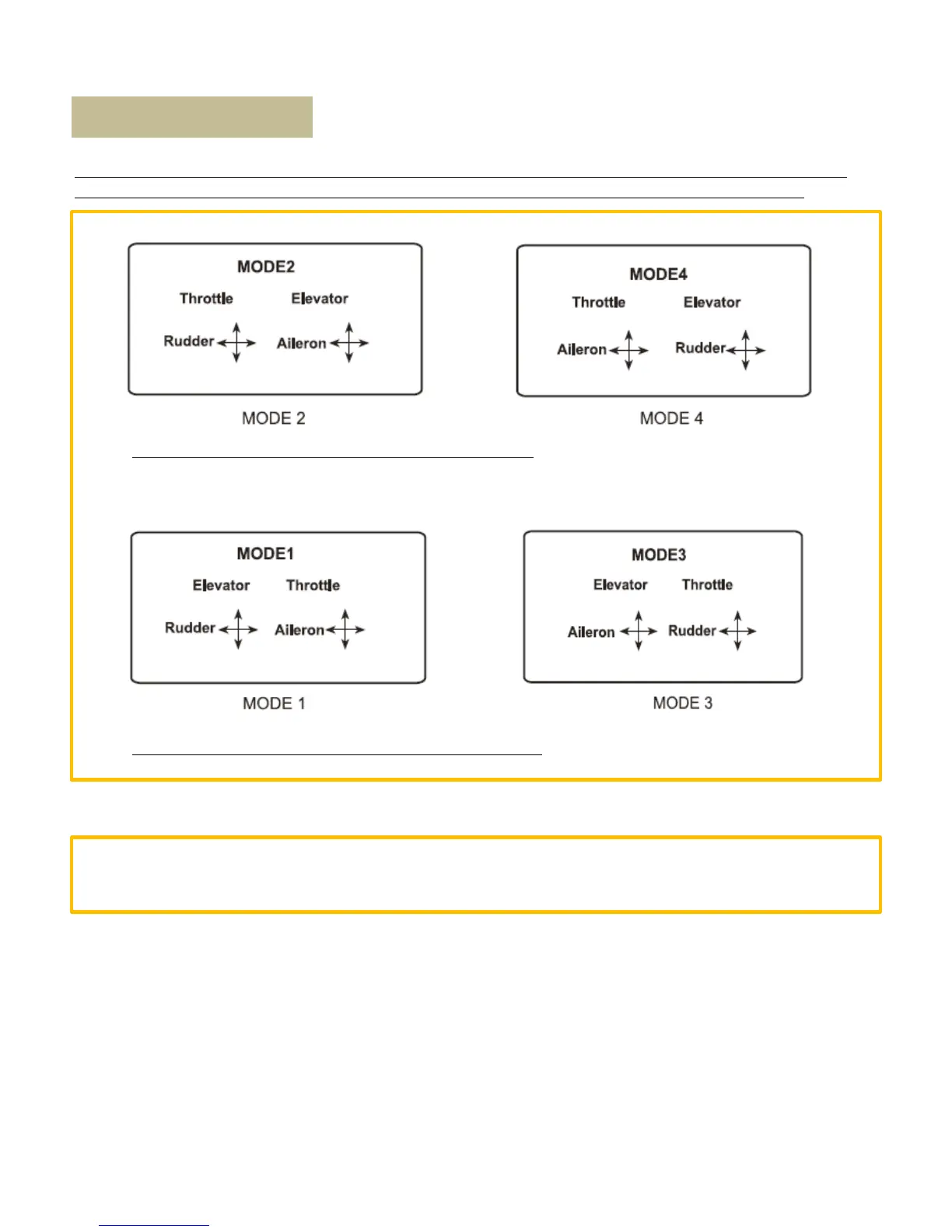 There are total four stick modes from MODE 1 to MODE 4. The left-hand throttle includes MODE2 and MODE 4,
