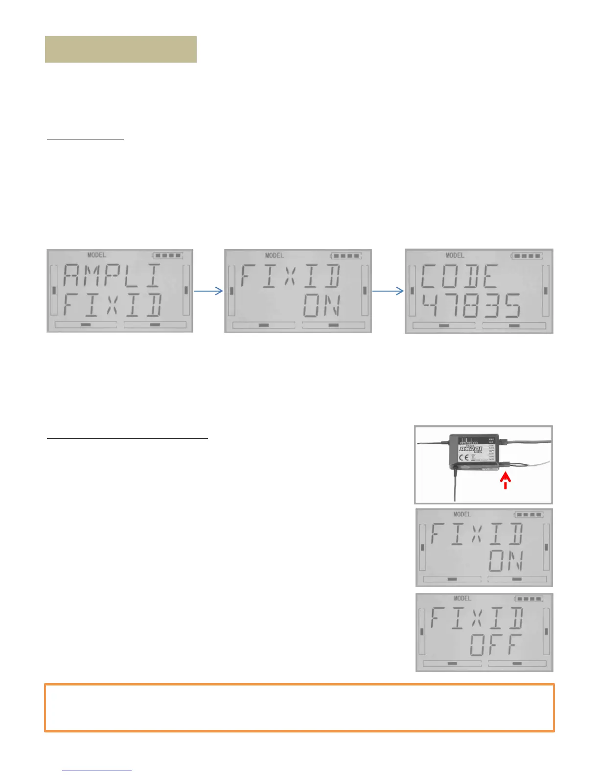 9 After the receiver’s Fixed ID is reset it should also be reset in the Transmitter: