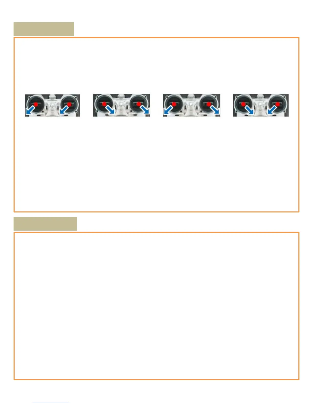 • Keep raising the throttle stick until all the rotors are working, push the throttle stick to the mid position and then