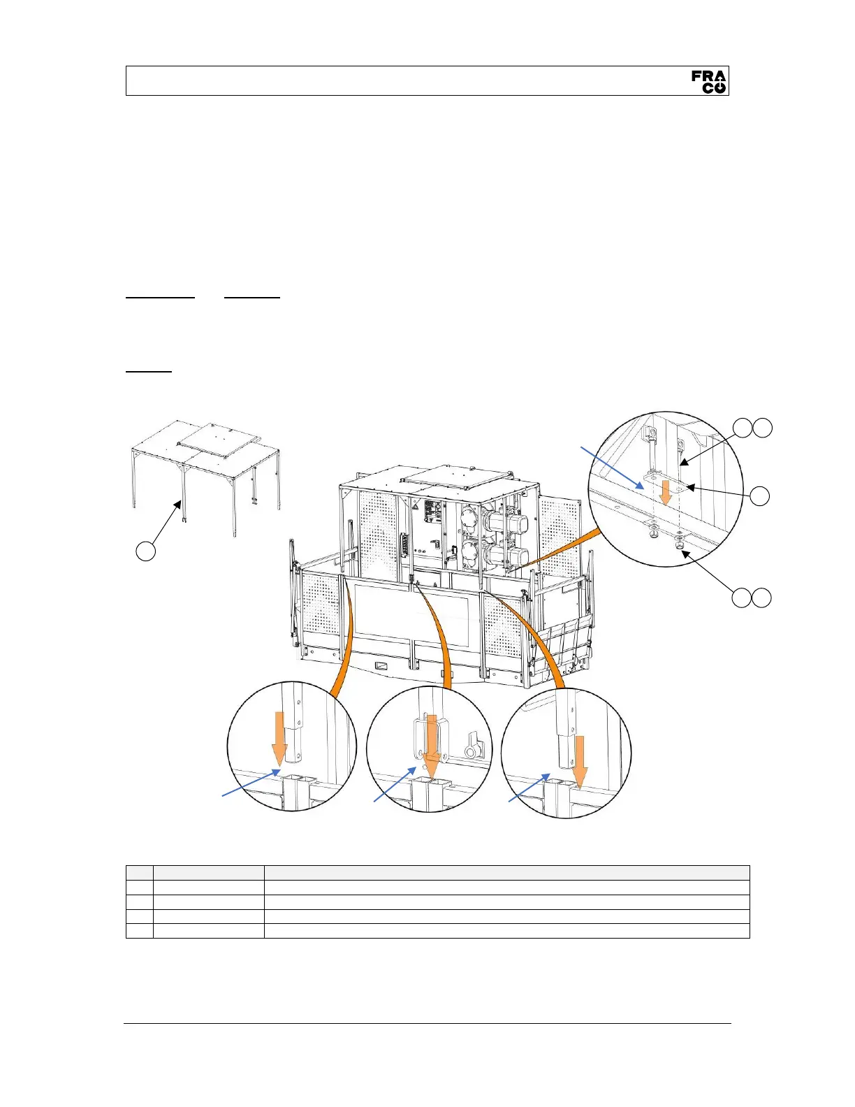 railing (1). Bolt the posts of the roof on the side of the motor unit (2).