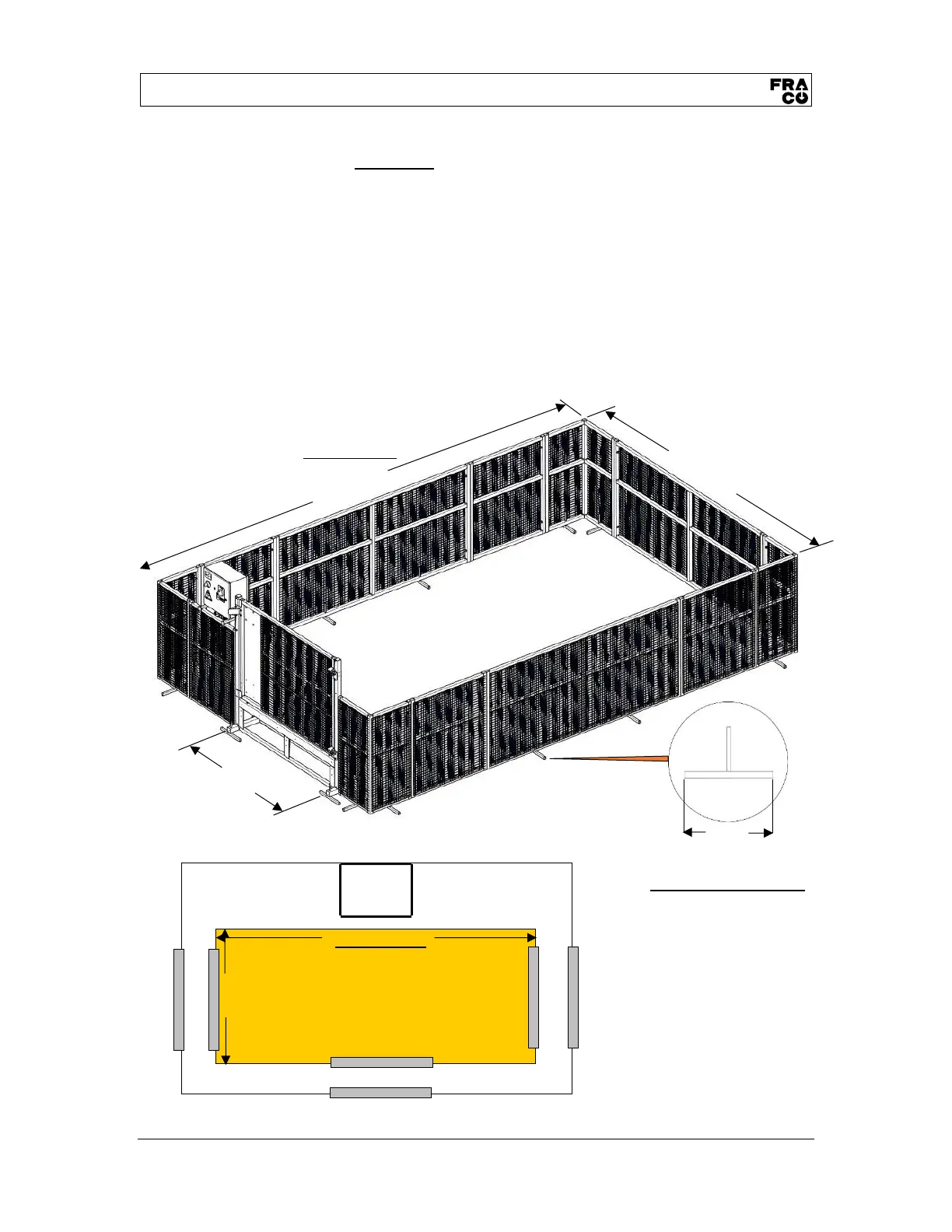 machine. The ground protection mesh must be installed according to the dimensions around the