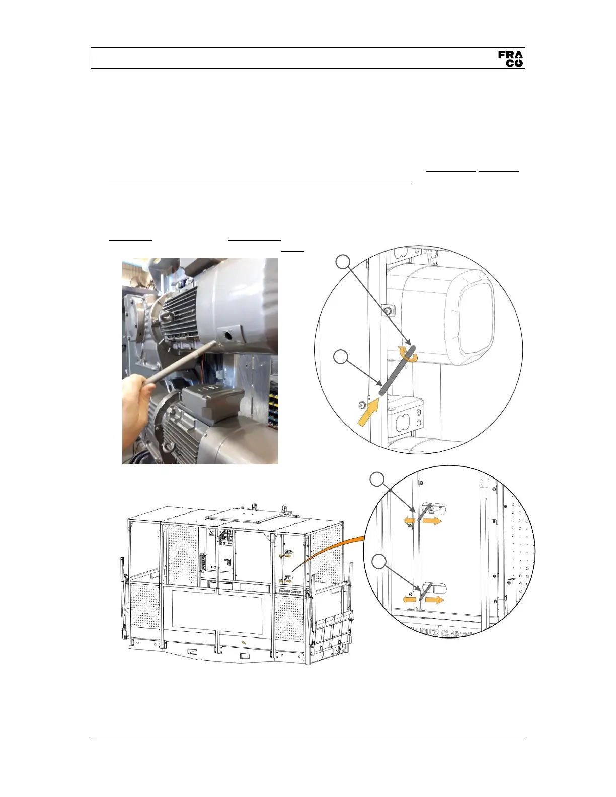 • Connect the emergency descent levers (1) in the threaded holes of the engine brakes (2).