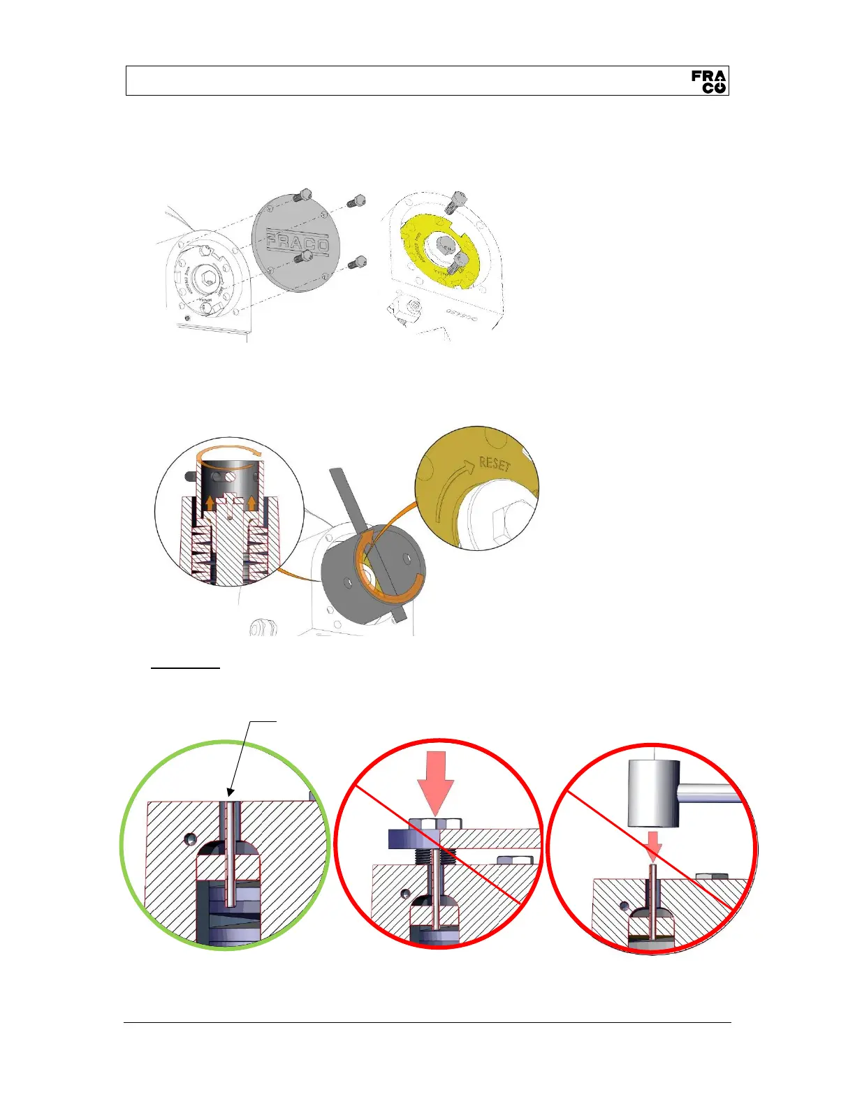 2. Use the tightening tork tool to turn the compression ring. Turn in the reset direction (indicated