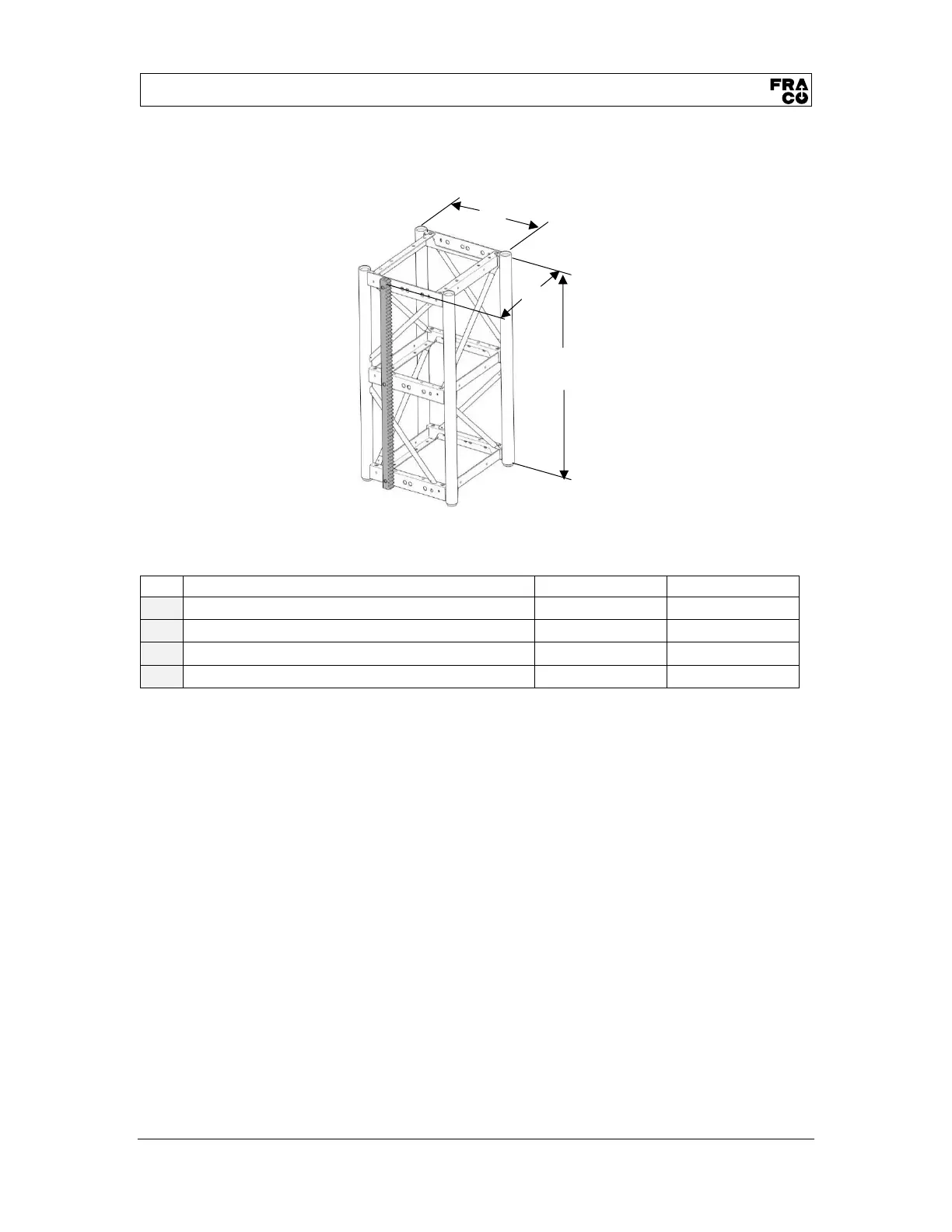 Fraco SEP-5000 - Mast Section Technical Sheet; Figure 50 - Mast Section Dimensions; Table 14 - Mast Section Weight and Dimensions