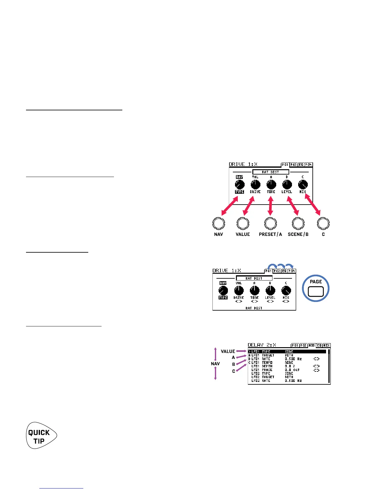 Press EDIT repeatedly to step in sequence through the menus of every block in your preset.