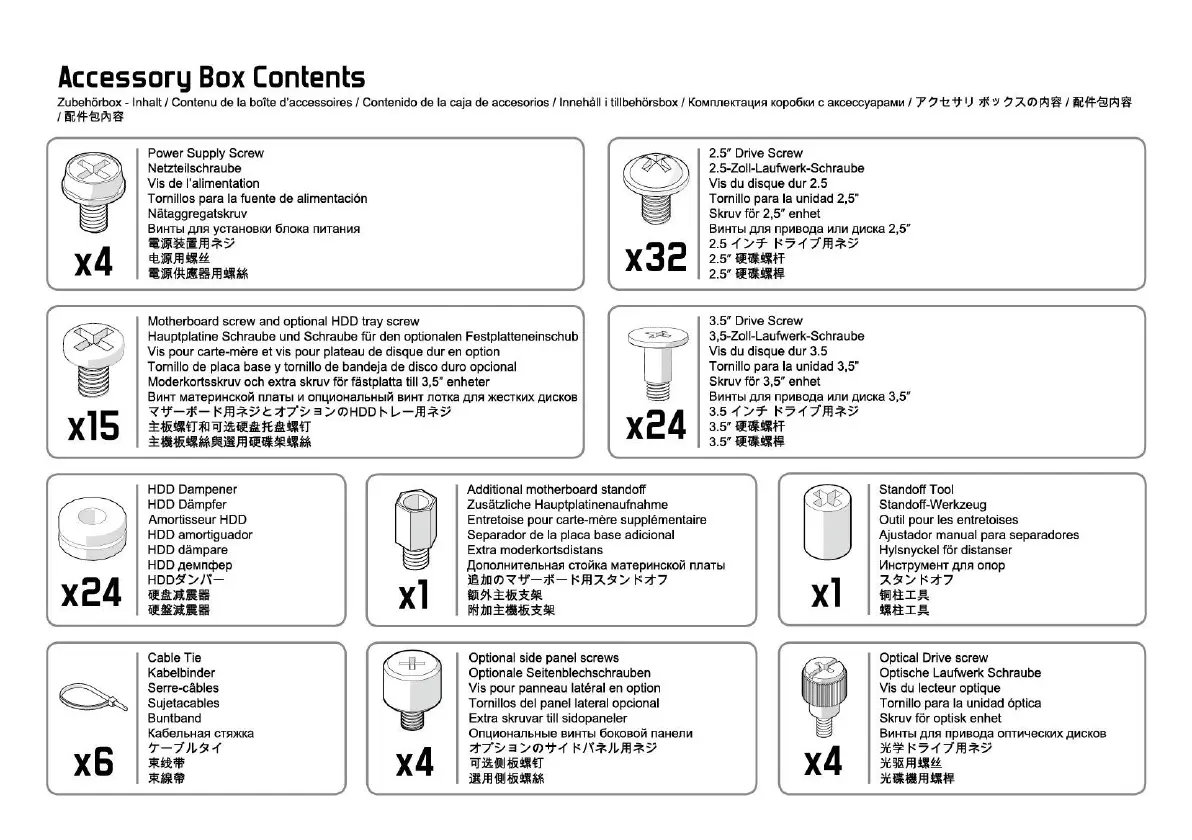 Zubehörbox - Inhalt / Contenu de la botted'accessoires / Contenido de la caja de accesorios / Innehåll i tillbehörsbox / KOMnneKTauMRKOP06Kb•1c aKceccyapaMMI 5 l)