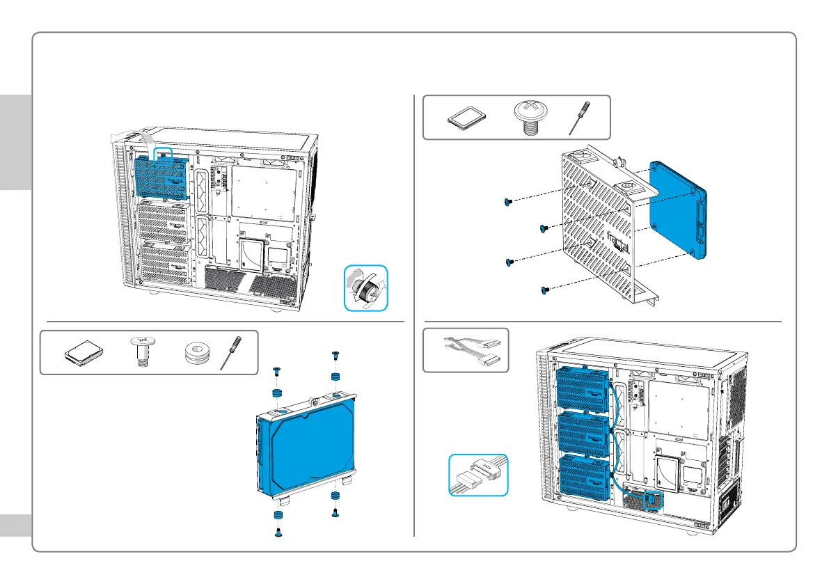 Installation 3,5- oder 2,5-Zoll-Laufwerk / Installer disque durs 2.5 ou 3.5 / Instale una unidad de 2,5” y 3,5” / Installera 2,5” eller 3,5” enhet / Установите привод 2,5” и 3.5” / 2.5 インチおよび 3.5 インチ ド
