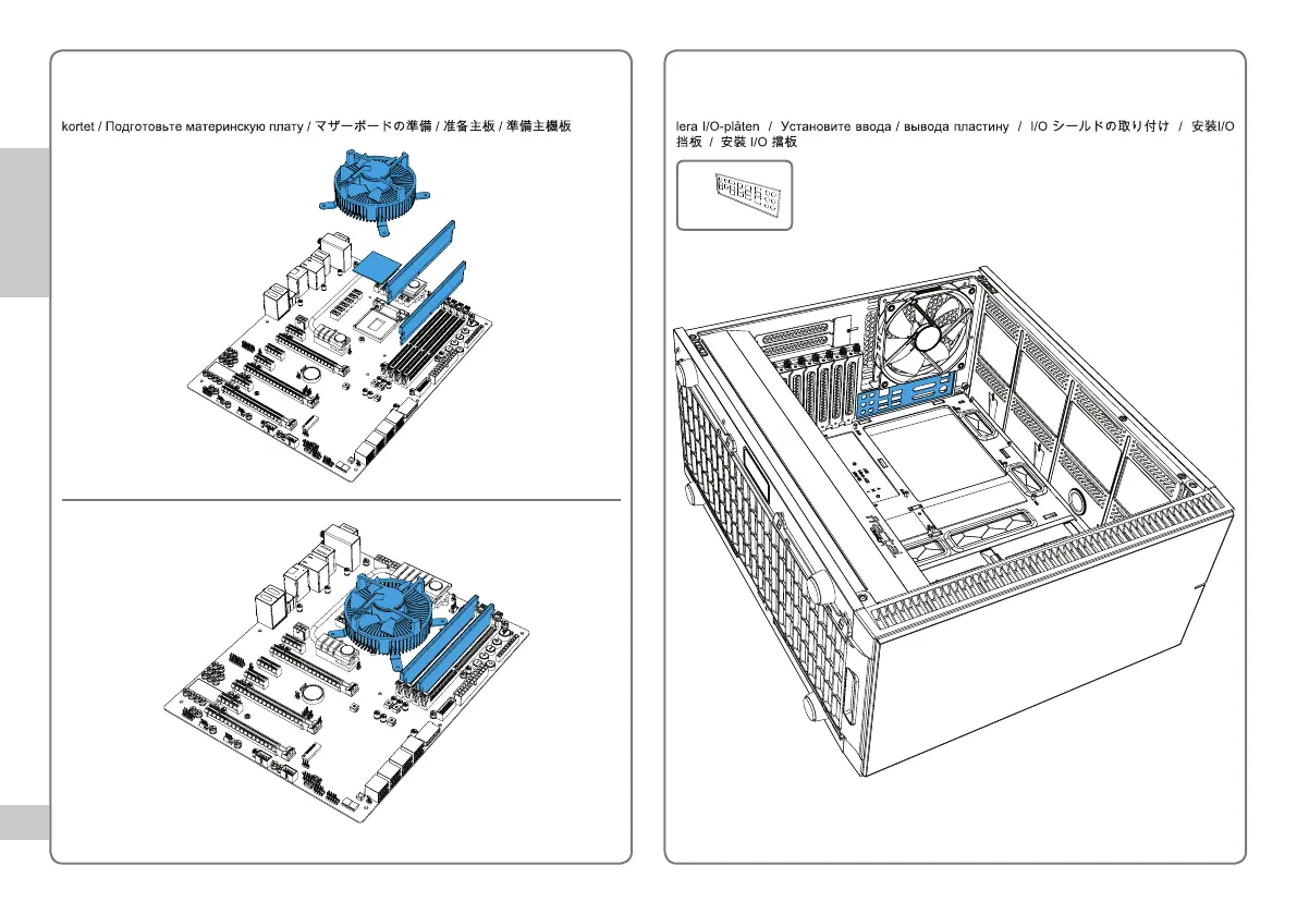 Vorbereitung Hauptplatine / Préparer la carte mère / Prepare la placa base / Förbered moder- Installieren Sie die I/O Schild / installer le plaque d’E/S / Instale la protección de E/S / Instal-