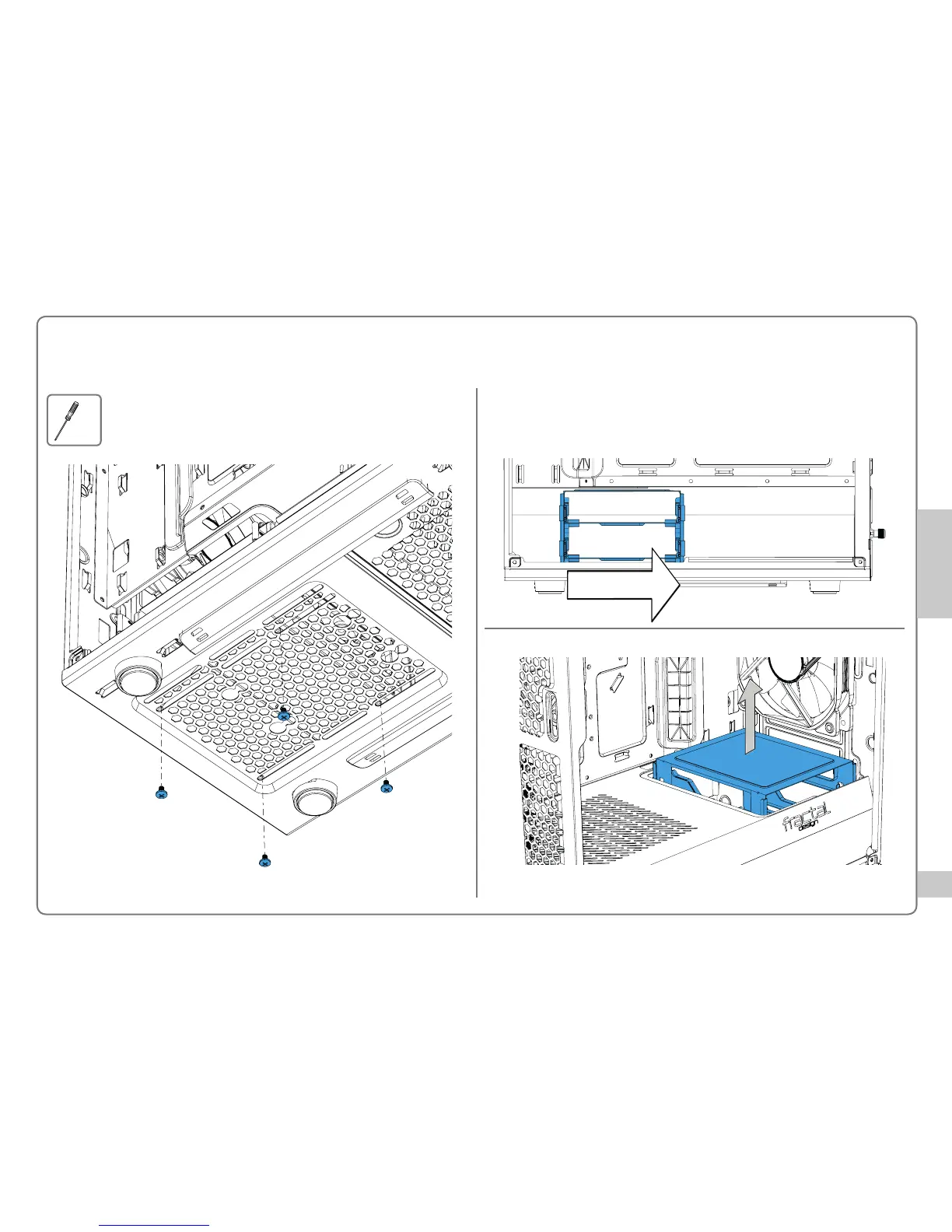 󰘱ytta den nedre hårddiskburen / Снимите или переместите нижний дисковод 3.5” / 下部の 3.5 インチ ドライブ ケージを取り外すか場所を変える / 拆除或重新安装底部的3.5’’硬盘笼 / 拆除或重新安裝