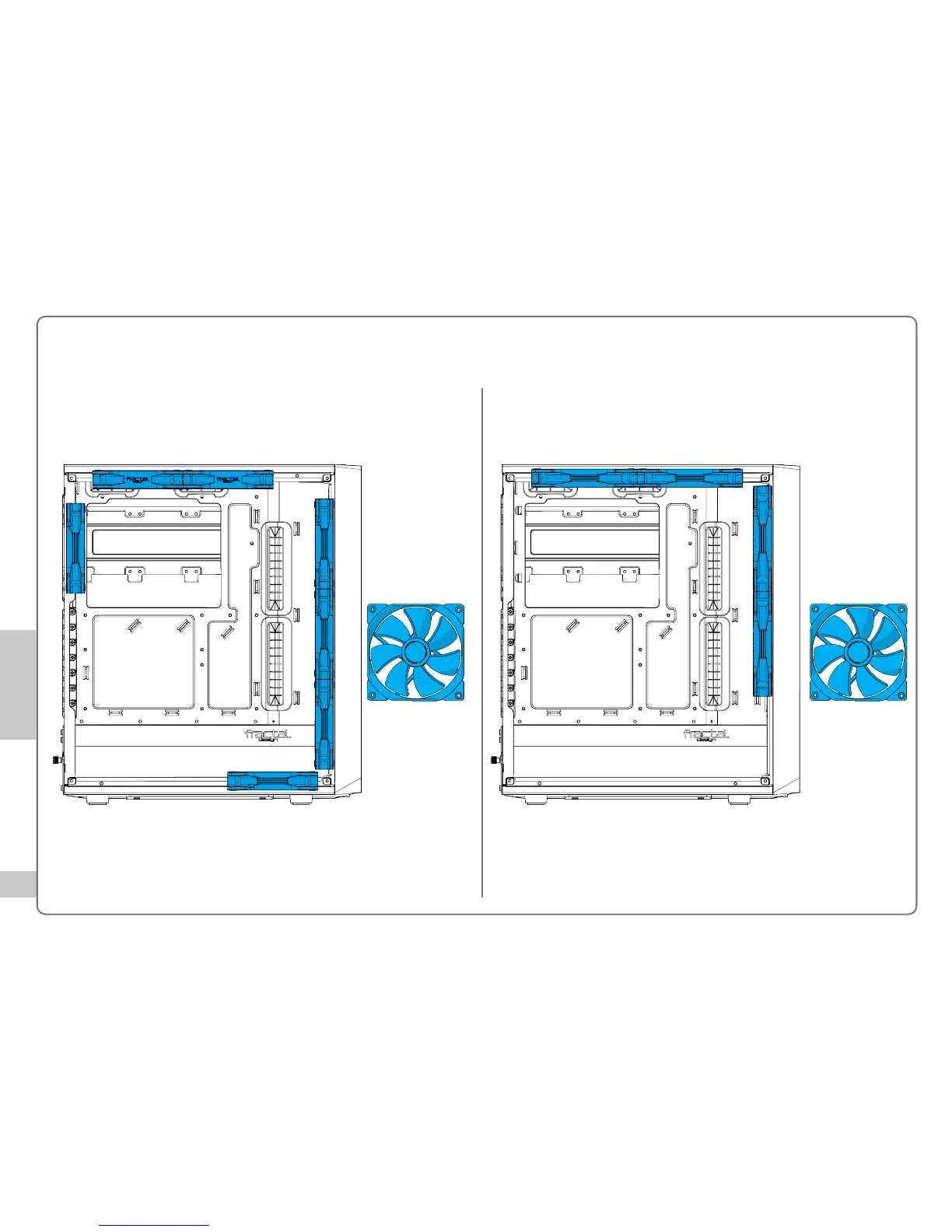 Mögliche Lüfteranordnung / Emplacements possibles des ventilateurs / Posibles ubicaciones de los ventiladores / Möjliga 󰘱äktpositioner / Места для установки вентиляторов / ファンを設置できる場所 /