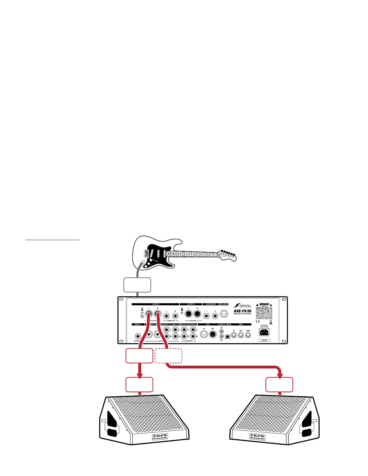 Output 1 is connected directly into full-range, flat response (“FRFR”) speakers such as those offered especially