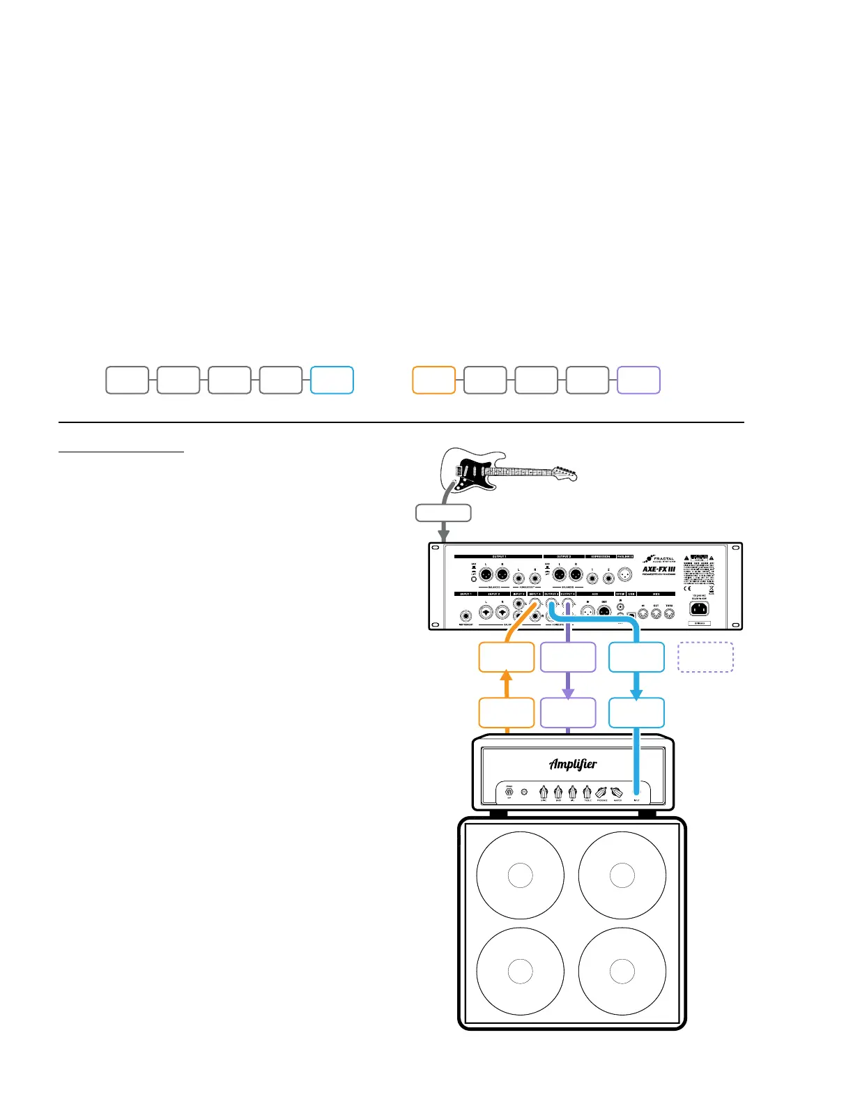 the Axe-Fx III rst, where it is processed by pre effects. Output 3 feeds the front of the amplier. A chain of