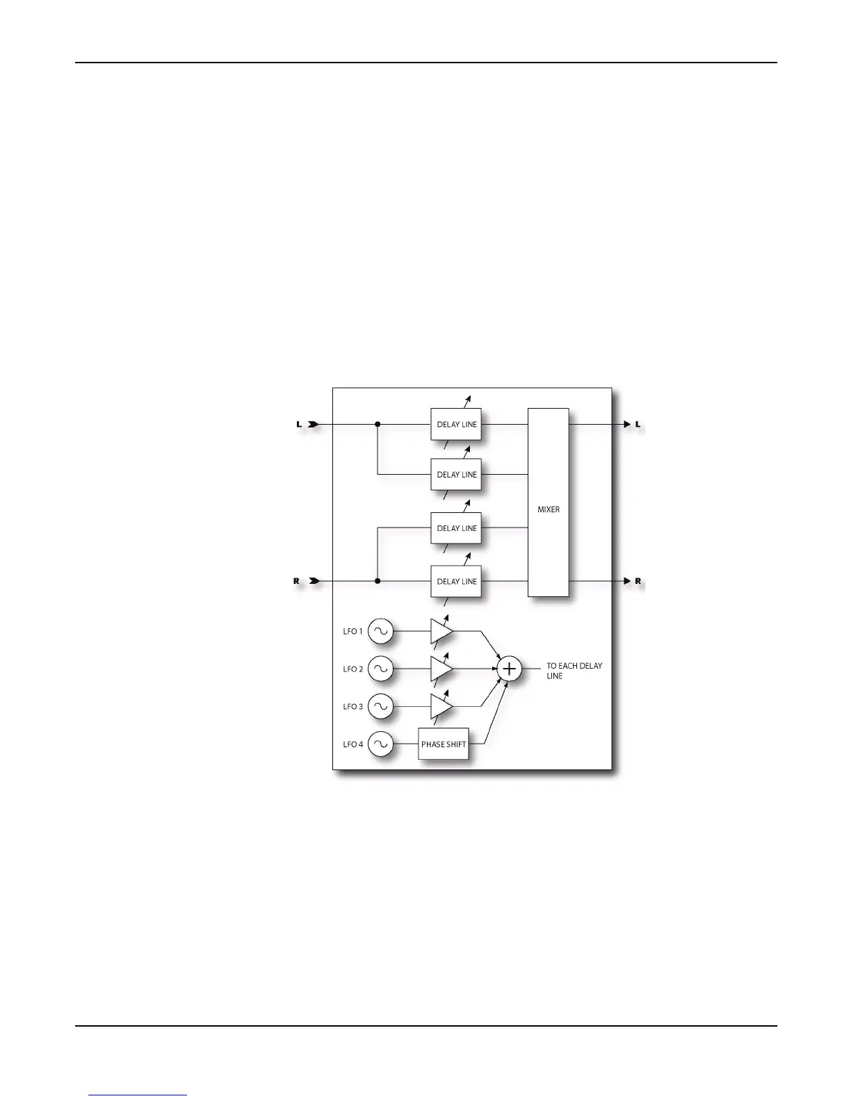 modulated by four separate LFO’s. The result is an incredibly lush and liquid chorus sound. It takes