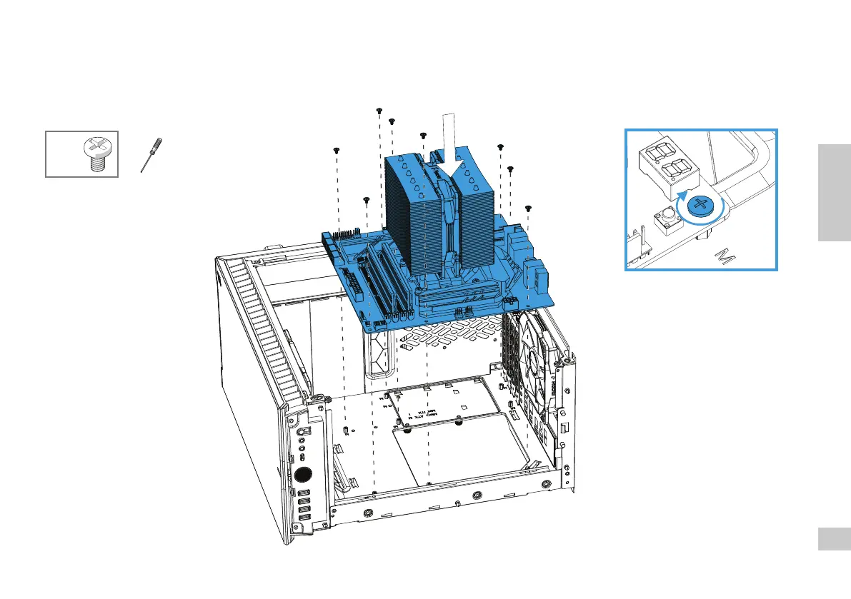 Installation Hauptplatinenzubehör / Installer l’ensemble carte mère / Instale la placa base / Installera moderkortet / Установите сборку материнской платы / マザーボード アセンブリの取り付け /