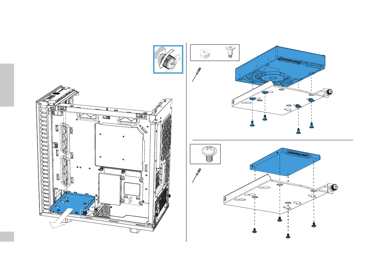 Installation 3,5-/2,5-Zoll-Laufwerk / Installer un disque dur de 3,5” ou 2,5” / Instale una unidad de 3,5”/ 2,5” / Installera en 3.5”/ 2.5” disk / Установите накопитель 3.5”/ 2.5” / 3.5インチ/2.5インチドラ
