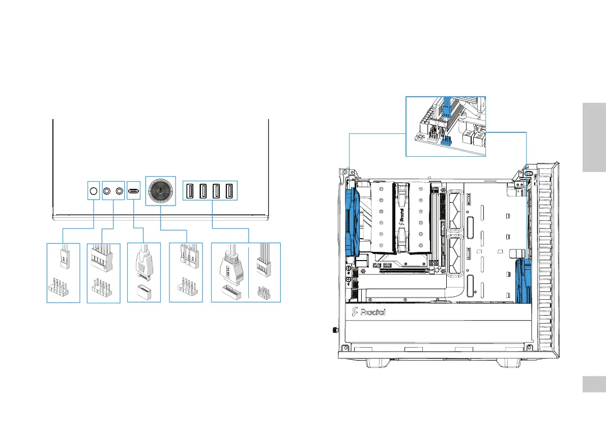 Anschlusskabel für Front-I/O und Lüfter / Câbles de connexion des E/S avant et des ventilateurs / Conecte los cables para los ventiladores y E/S frontales / Koppla in kablar till fronten och äktarna /
