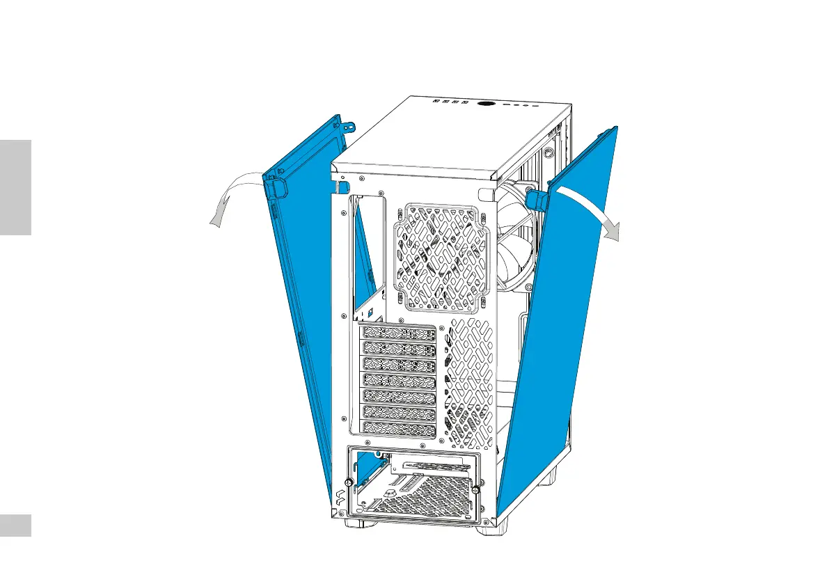 Ausbau Seitenbleche / Enlever les panneaux latéraux / Retire los paneles laterales / Montera av sidopaneler / Снимите боковые панели / 側面パネルの取り外し / 拆下侧面板 / 拆除側面面板